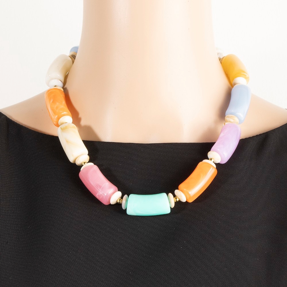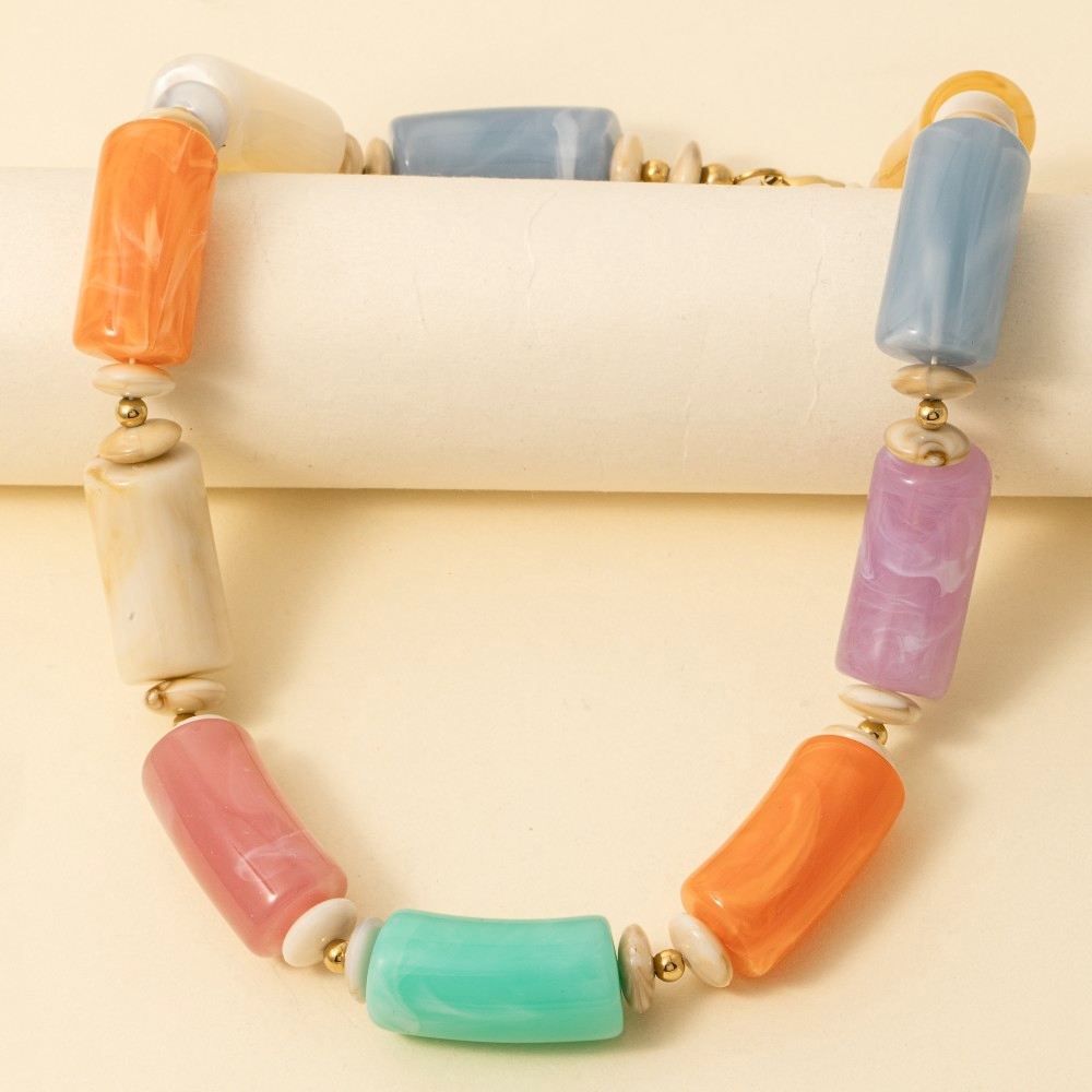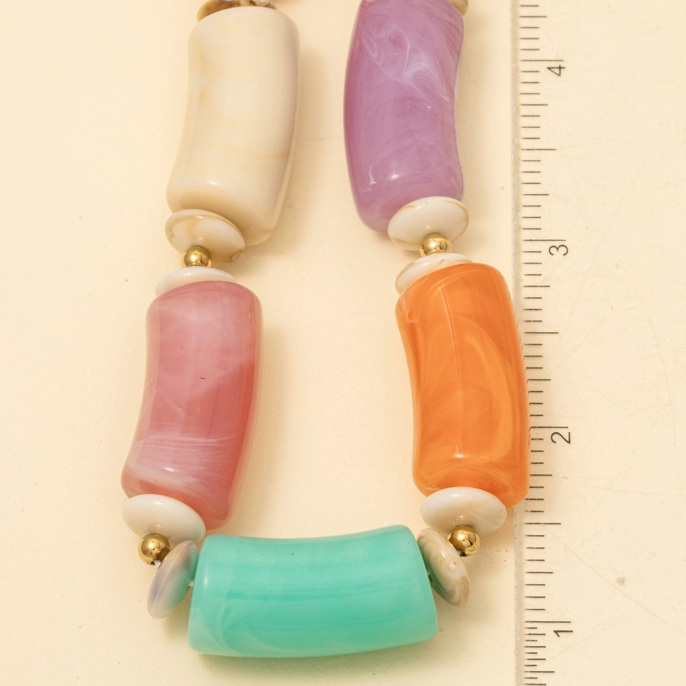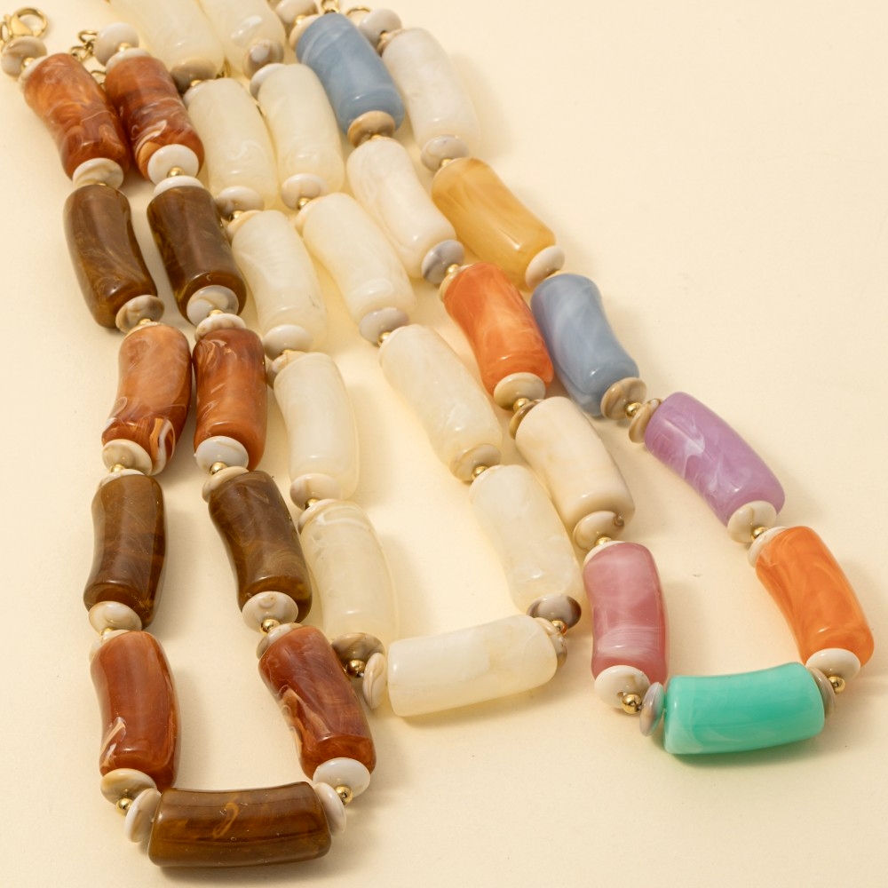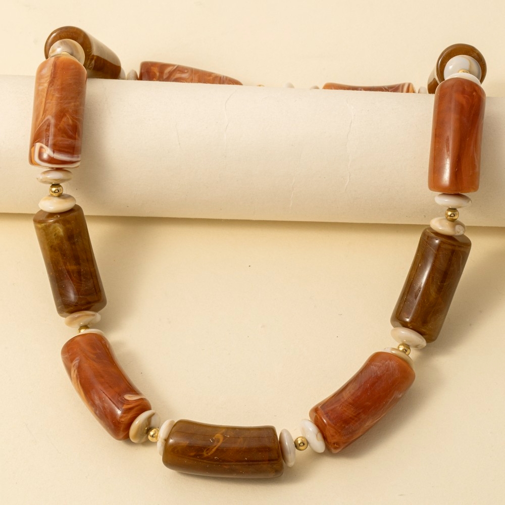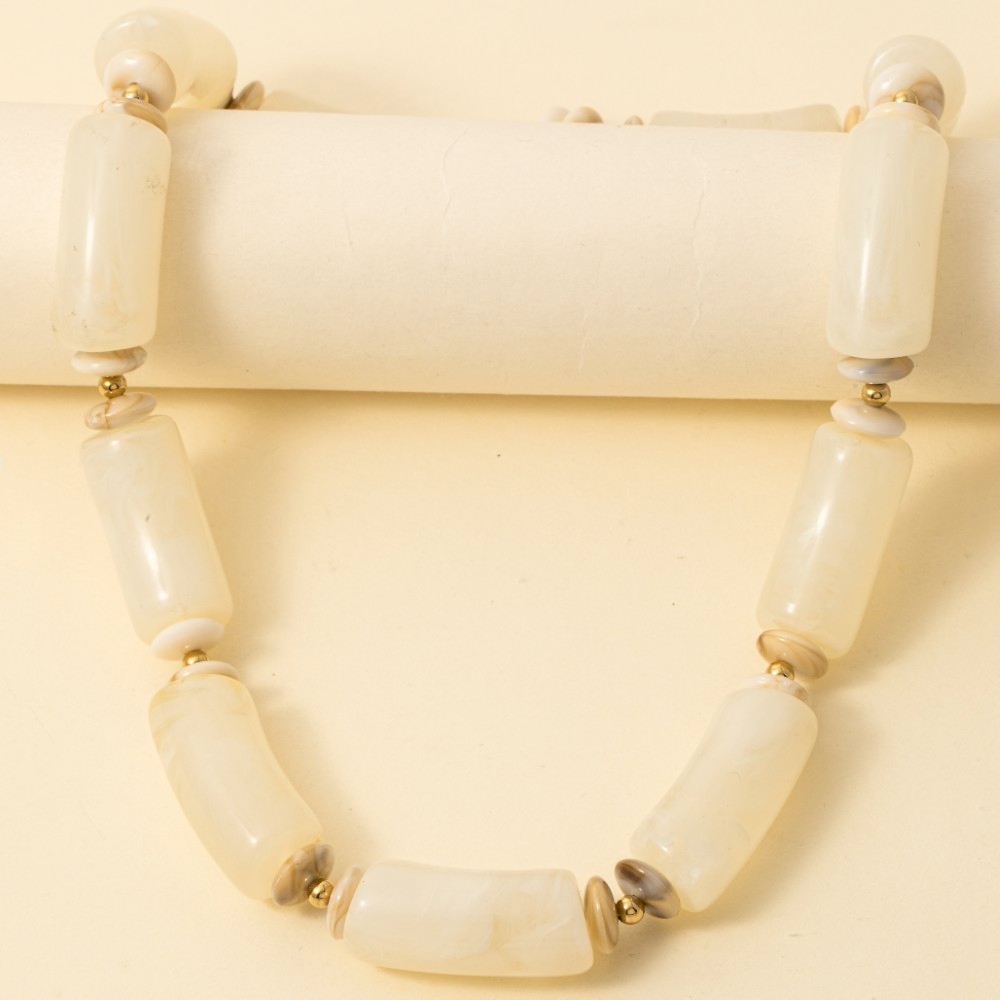 • Add a touch of luxury to any outfit, this necklace flaunts a luxurious large marble resin tube beads design. This necklace is an effortless way to add some personality to your outfit. Available in BR, IV, MU. This item is sold in packs of 1.