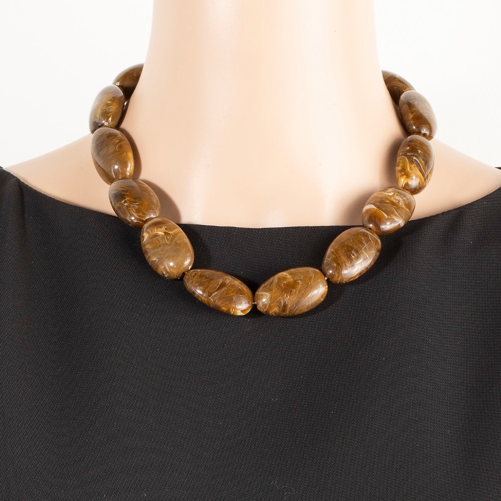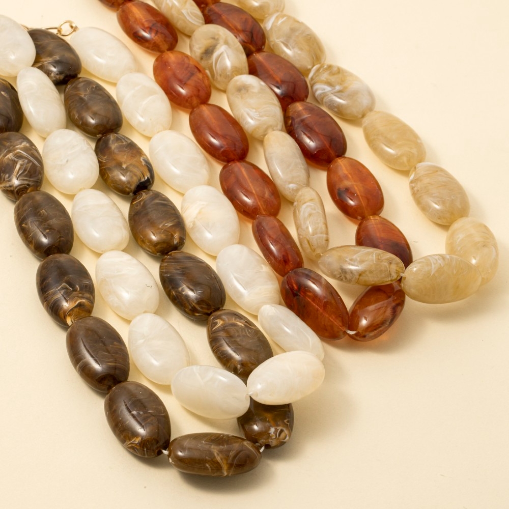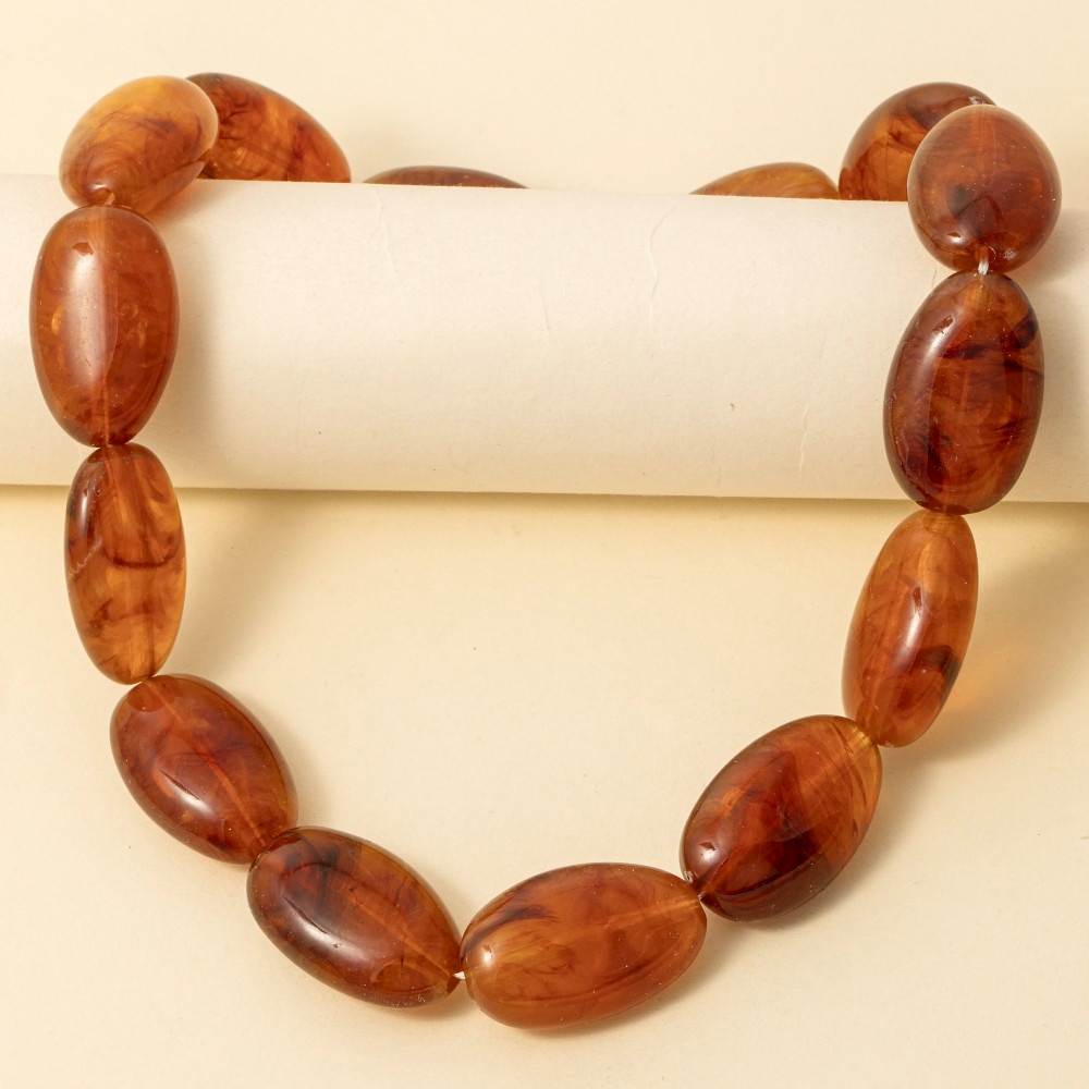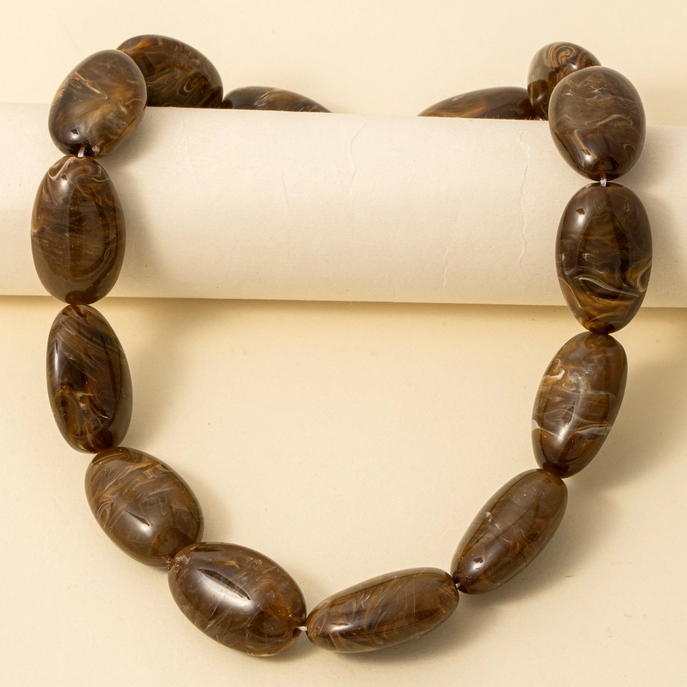 • A classic design with a contemporary twist, this necklace brings a one-of-a-kind large oval marble resin beads design. A stylish necklace that's perfect for complementing any outfit you wear. Available in DBR, IV, NU, TO. This item is sold in packs of 1.