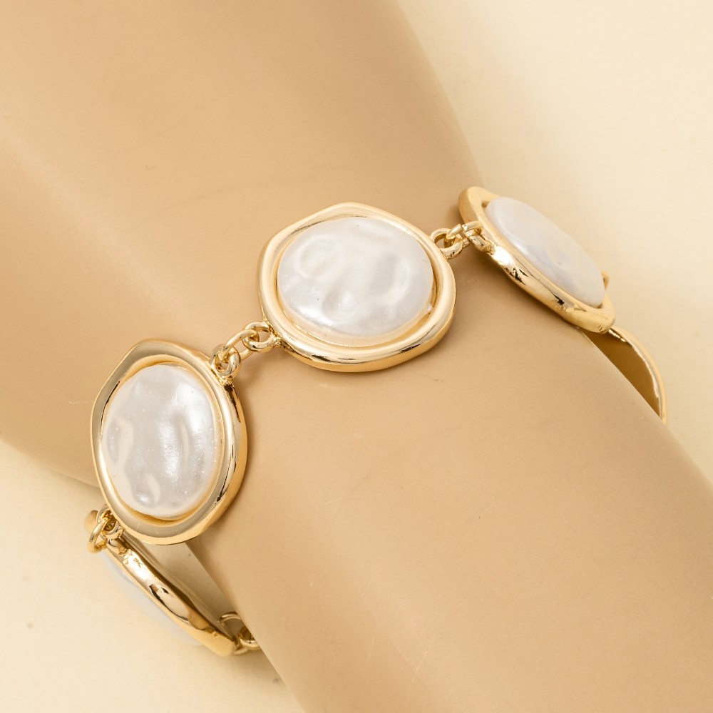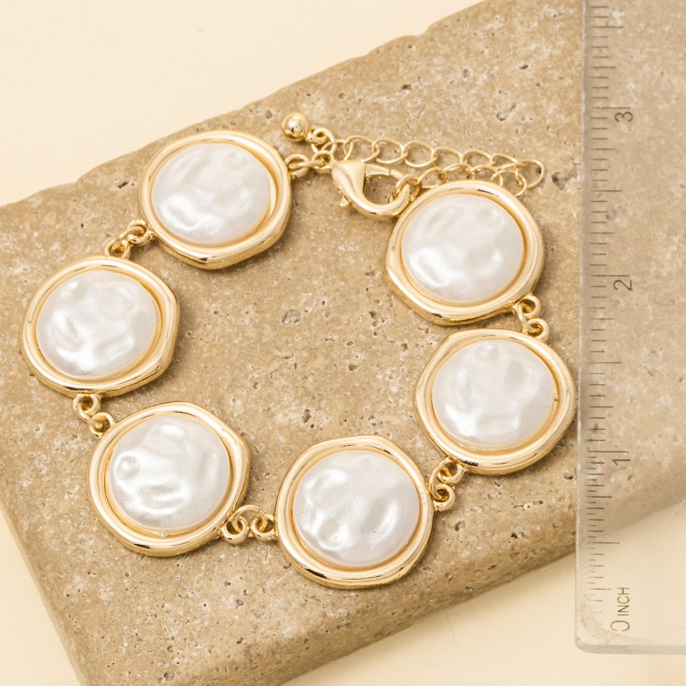 • The perfect way to add some sparkle to your outfit, this chain bracelet exudes a refined large pearl disc link design. A stylish chain bracelet that's perfect for complementing any outfit you wear. Available in GDCRM. This item is sold in packs of 1.