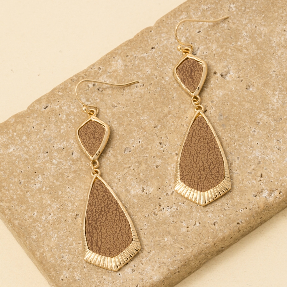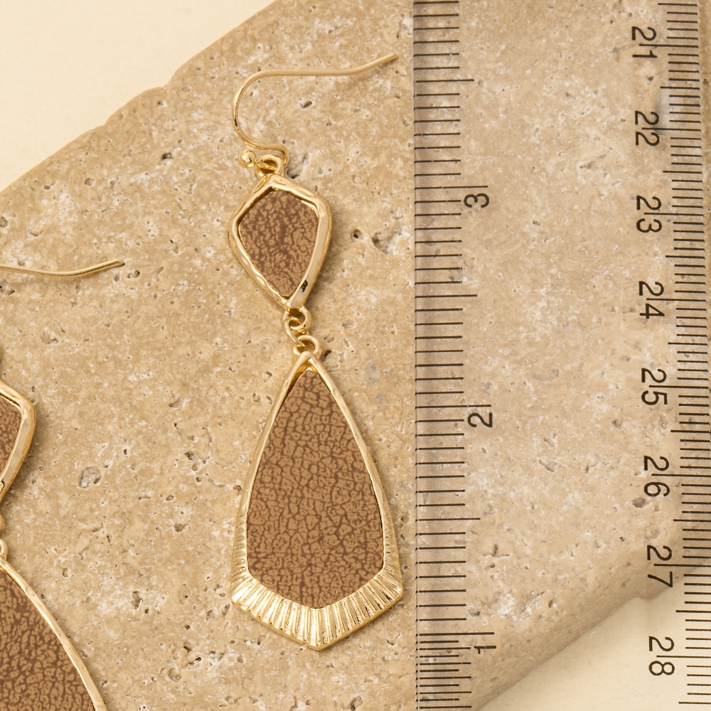 - A contemporary masterpiece, this pair of dangle earrings radiates a sleek leather accent double teardrop design. Master the art of accessorizing with this versatile pair of dangle earrings, a key element for achieving a chic and polished look. Available in JET, SBRN, SIV. This item is sold in packs of 1.