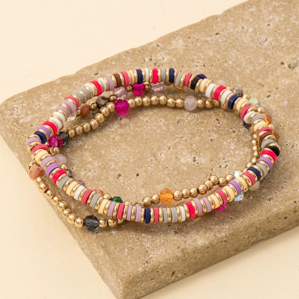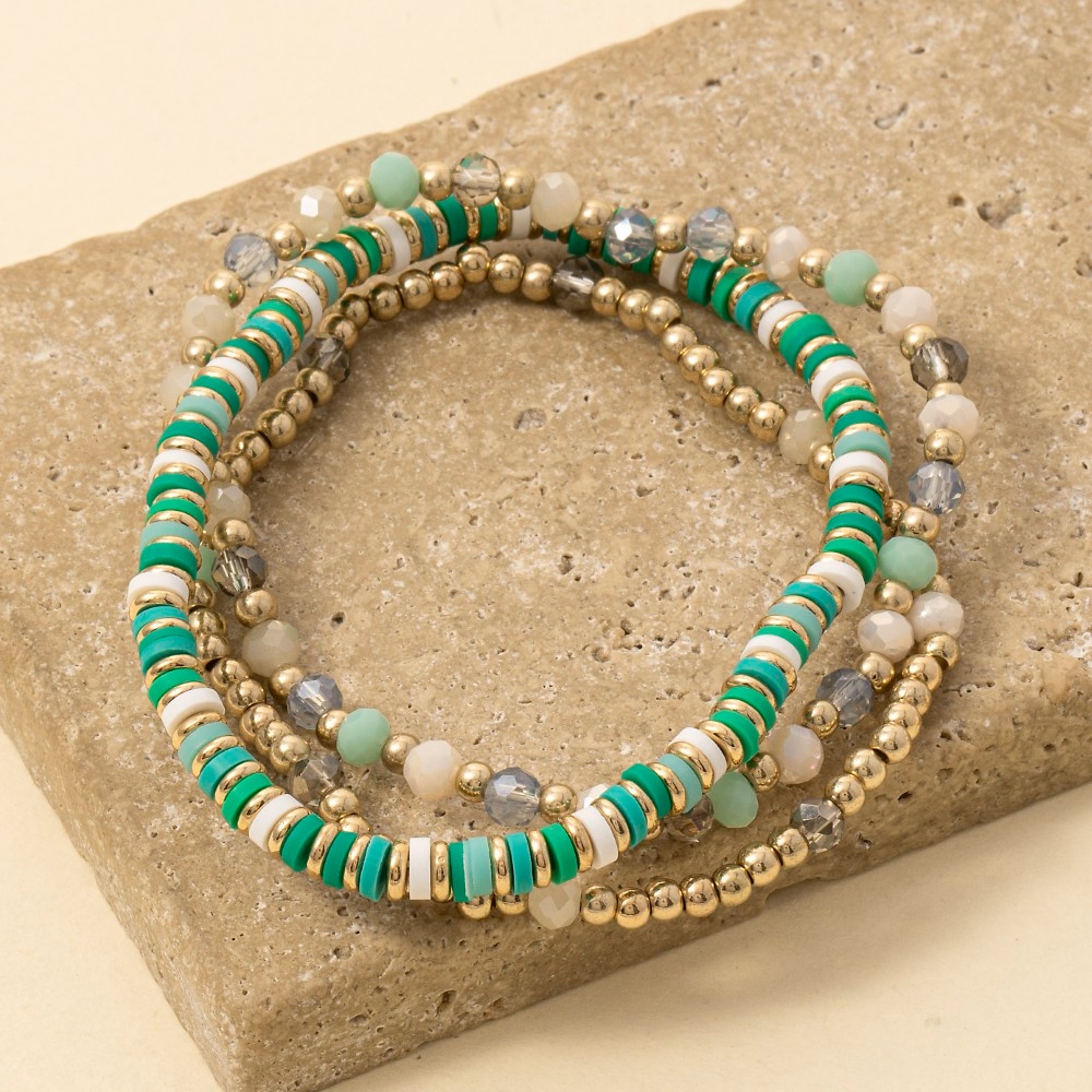 The perfect way to complete any outfit, this bracelet brings a one-of-a-kind mixed metallic faceted and disc beaded set design. Elevate your fashion ensemble effortlessly with this versatile bracelet, a stylish choice for the modern trendsetter. Available in GDIVBR, GDMNT, GDMU. This item is sold in packs of 1.