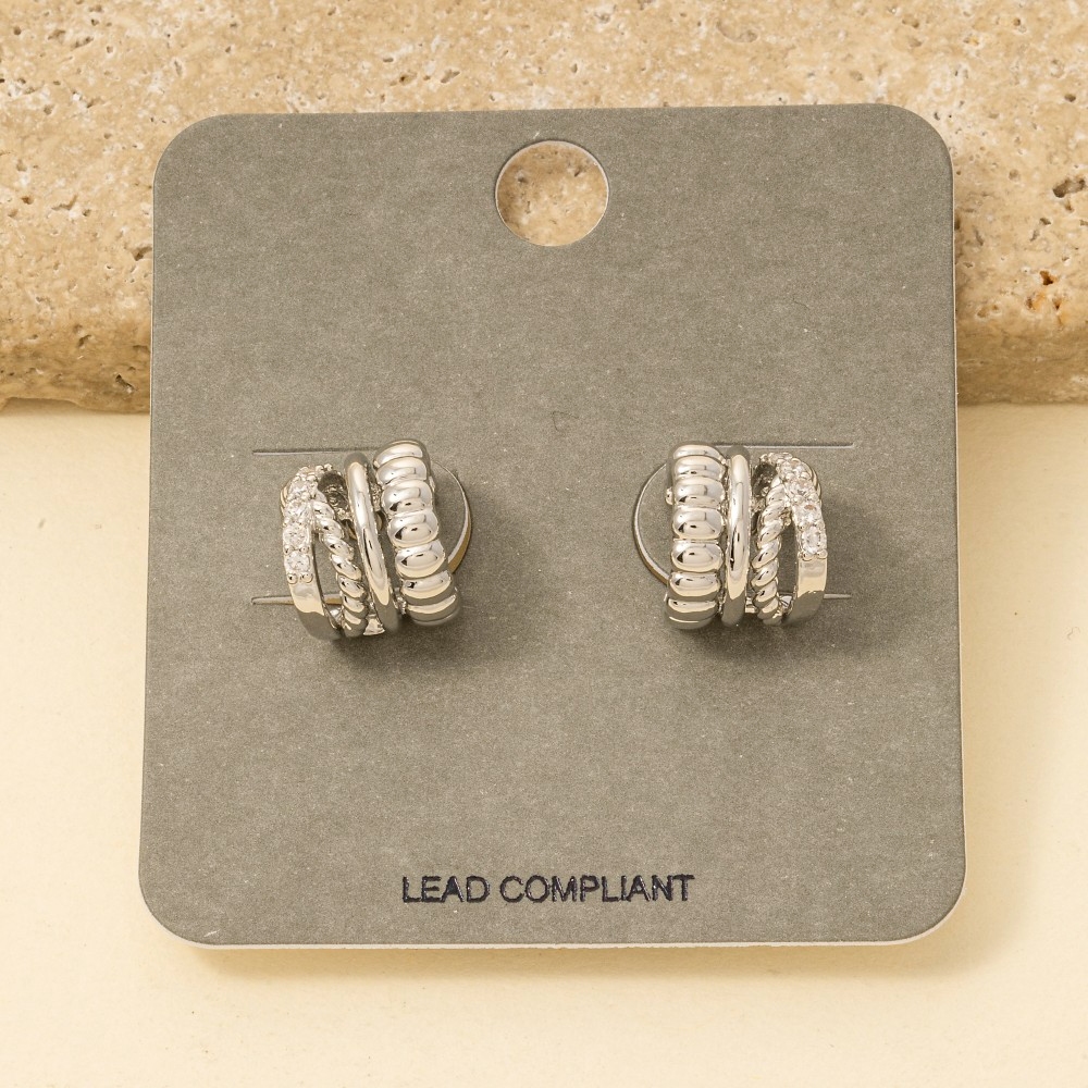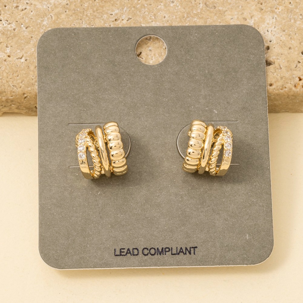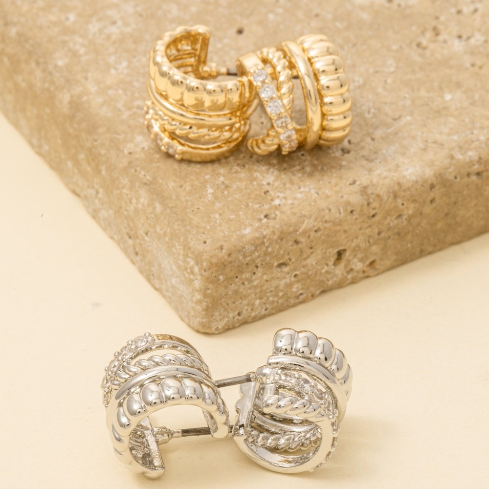 • A stunning piece that is sure to turn heads, this pair of hoop earrings emanates an elegant mini four row design. Achieve a perfect balance of style and sophistication with this versatile pair of hoop earrings, the ultimate choice for the fashion-savvy individual. Available in GDCRY, RHCRY. This item is sold in packs of 1.