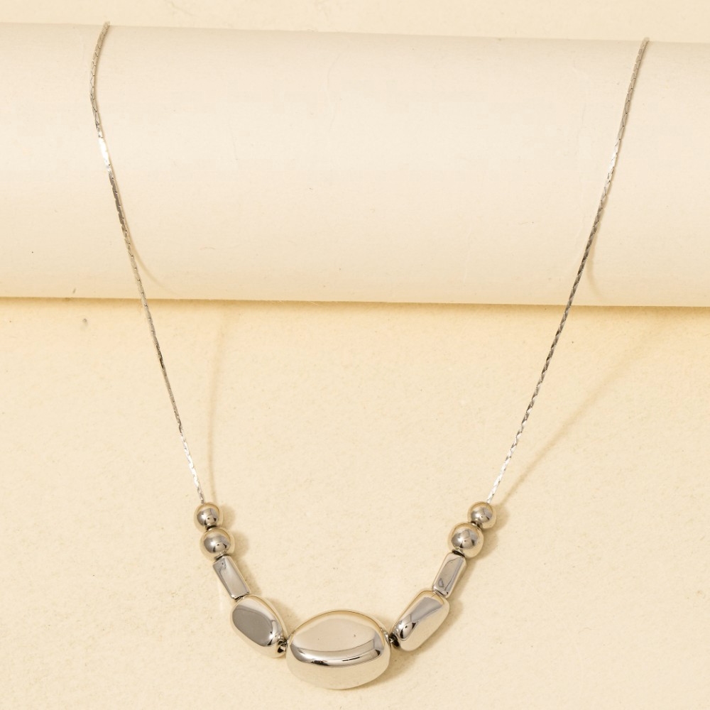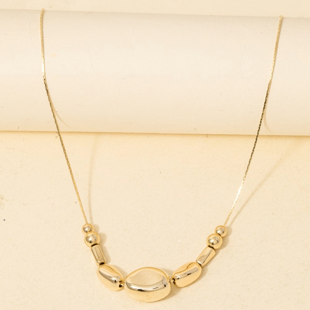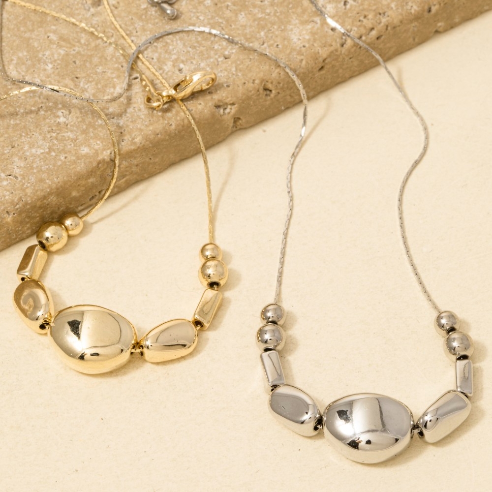 • Stay on-trend and stand out from the crowd, this chain necklace carries a charming mixed metallic beads dainty design. Discover the magic of accessorizing with this versatile chain necklace, effortlessly upgrading the style quotient of any outfit. Available in G, S. This item is sold in packs of 1.