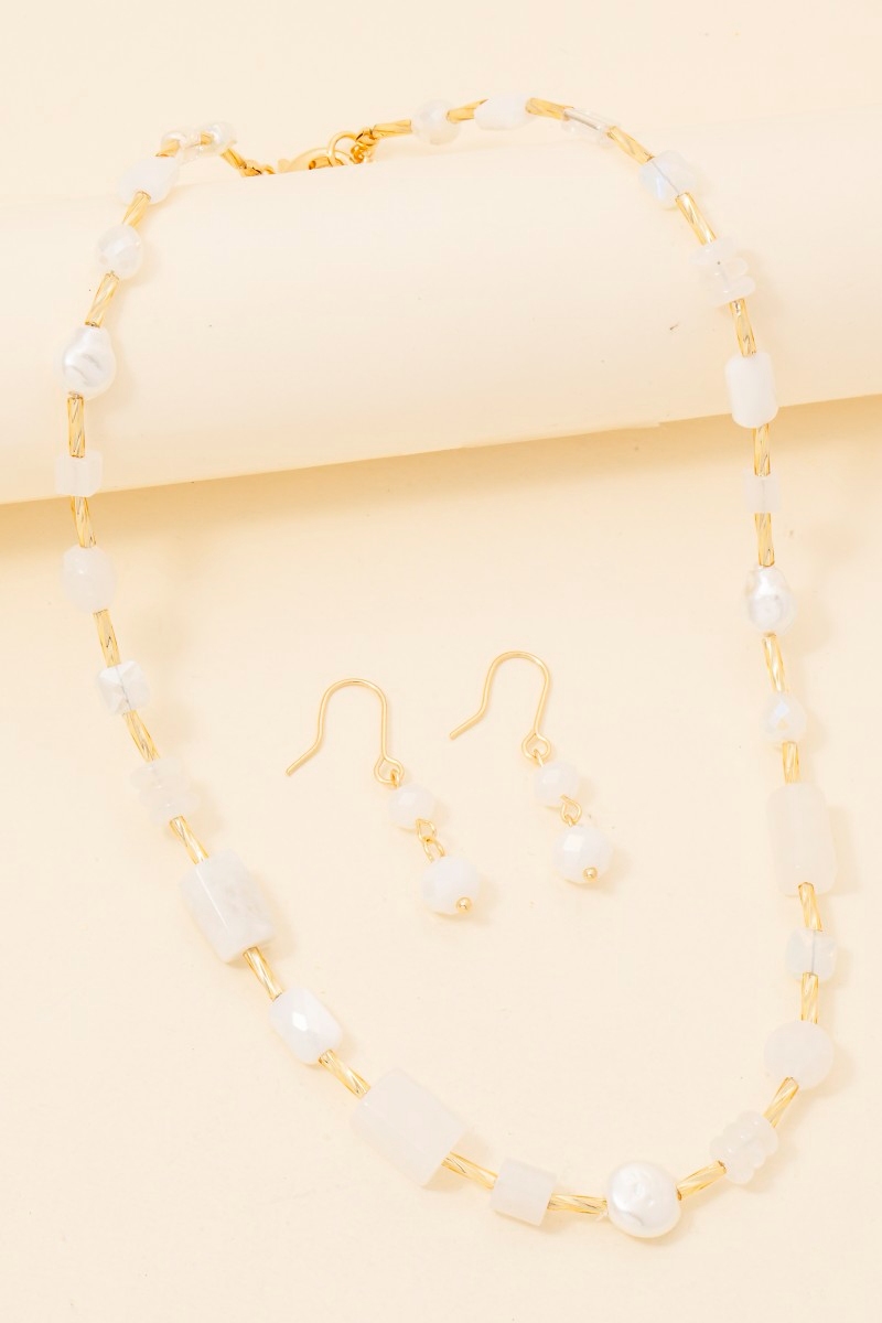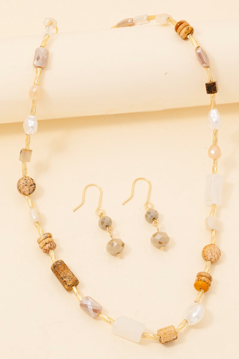 • A classic design with a contemporary twist, this necklace set incorporates a flawless mixed tube stone and faceted beads design. The perfect necklace set for completing any outfit, whether you're dressing up or keeping it casual. Available in BU, LG, NA, WT. This item is sold in packs of 1.