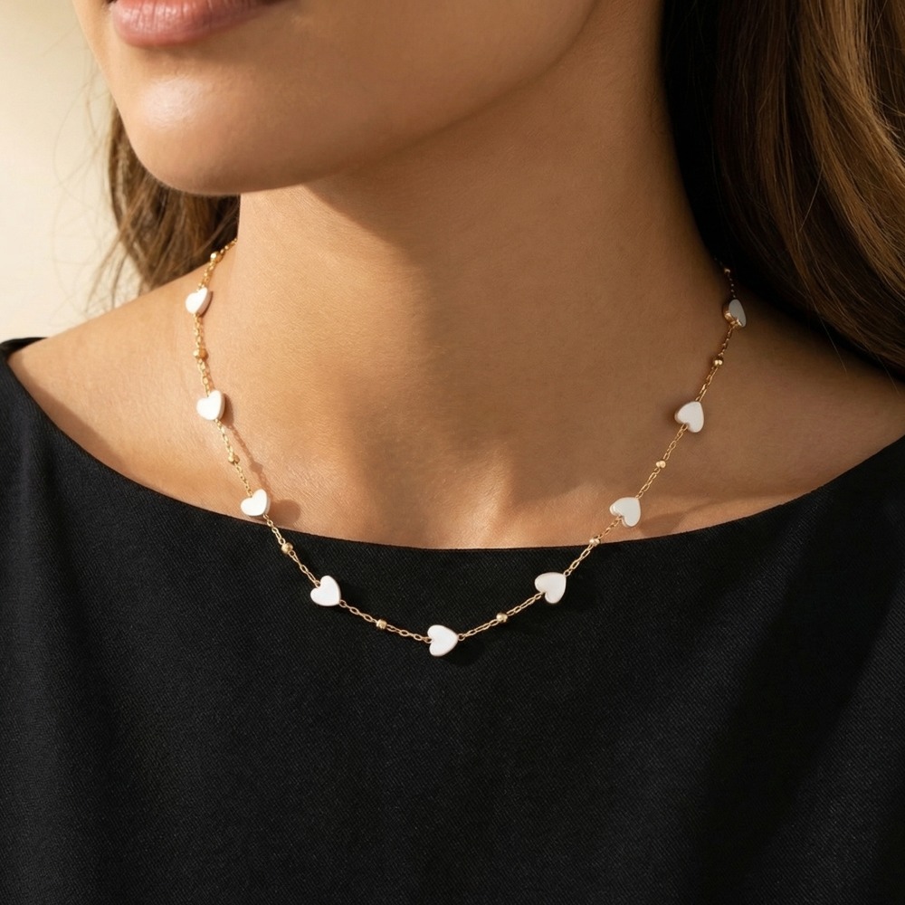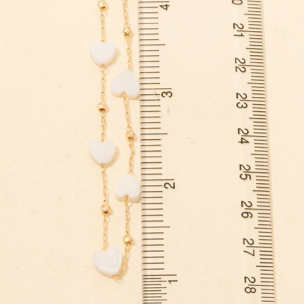 • A versatile and stylish addition to any wardrobe, this chain necklace comes with a special mother of pearl station hearts design. This item is perfect for adding some color and vibrancy to any outfit. Available in GCM. This item is sold in packs of 1.
