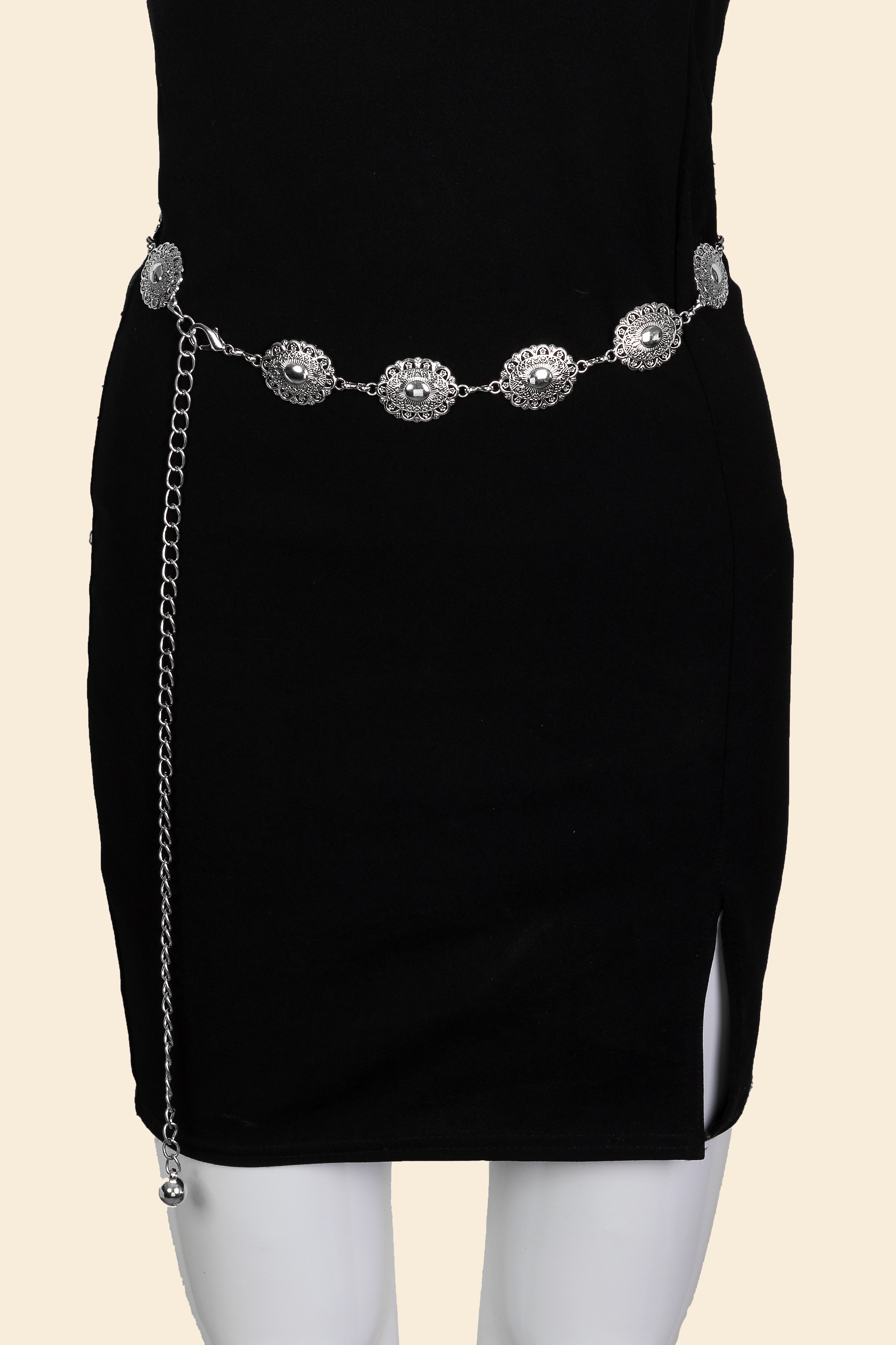• The perfect way to add some sparkle to your outfit, this chain belt boasts a magnificent ornate oval disc design. Elevate your style effortlessly with this versatile chain belt, enhancing the appeal of any ensemble. Available in G and S. This item is sold in packs of 1.