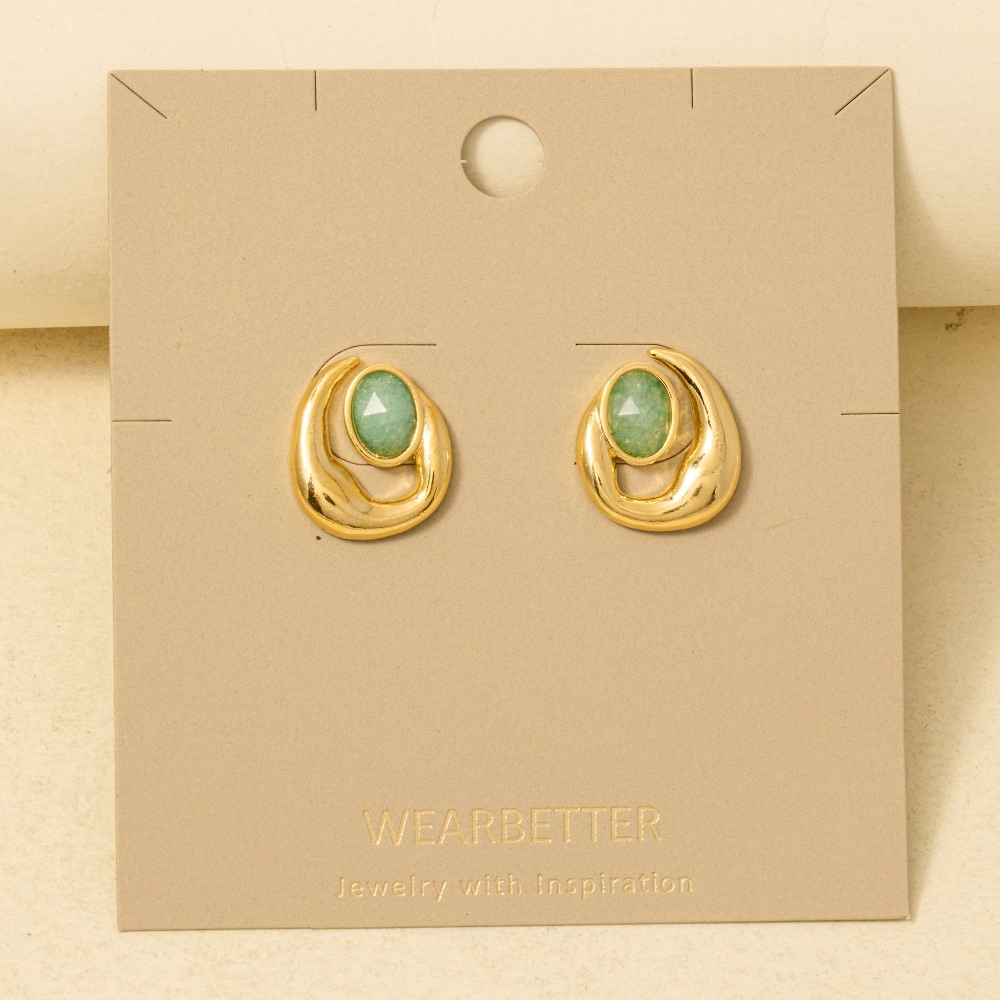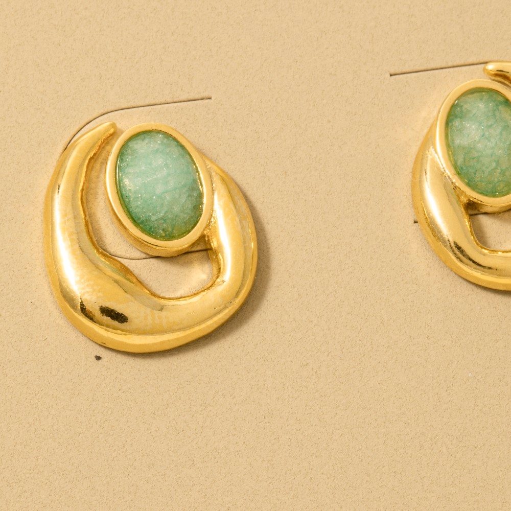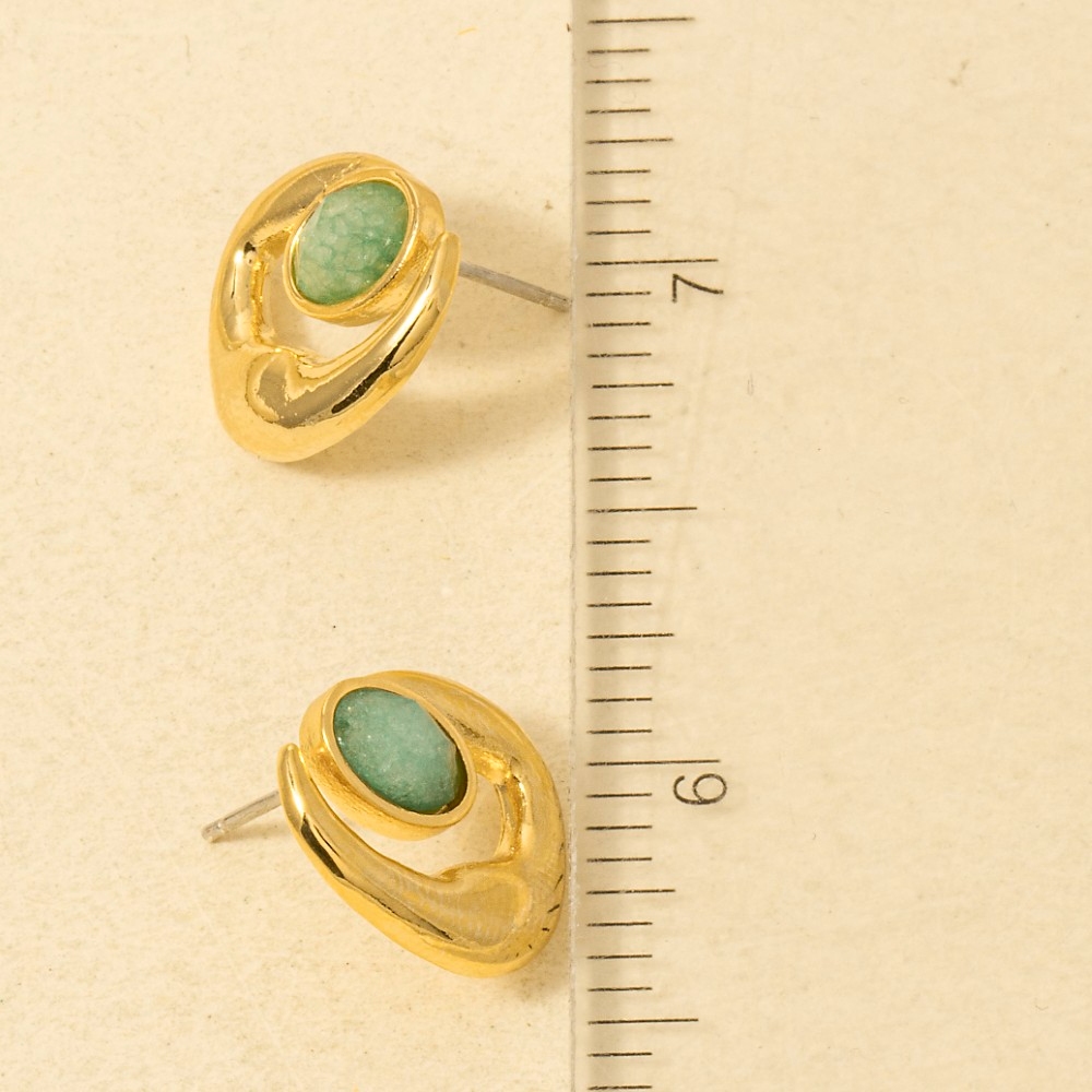 - A classic design with a contemporary twist, this trending pair of earrings displays a unique ornate oval gemstone stud post earrings design. Unleash the charm of this versatile trending pair of earrings, effortlessly turning any outfit into a fashion statement. Available in MI, PK. This item is sold in packs of 1.