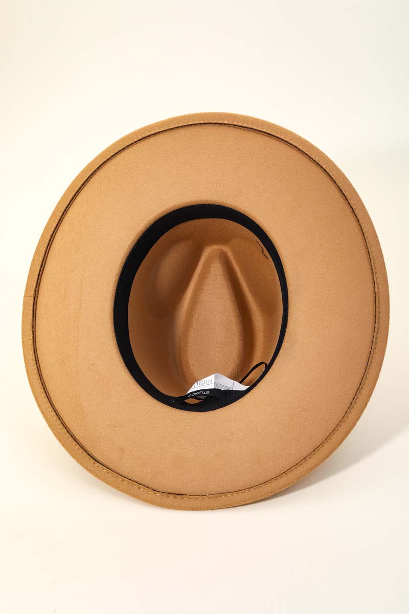 • A popular giftable fedora hat created with a oval coin chain fedora hat design. This is an absolute must have for any wardrobe. Faux suede is a synthetic fabric typically 100% polyester made to resemble genuine suede that is produced from a cow hide. This fedora hat is made with 90% Polyester and 10% Alloy. Also made with an adjustable inner string. This item is sold in packs of 1.
