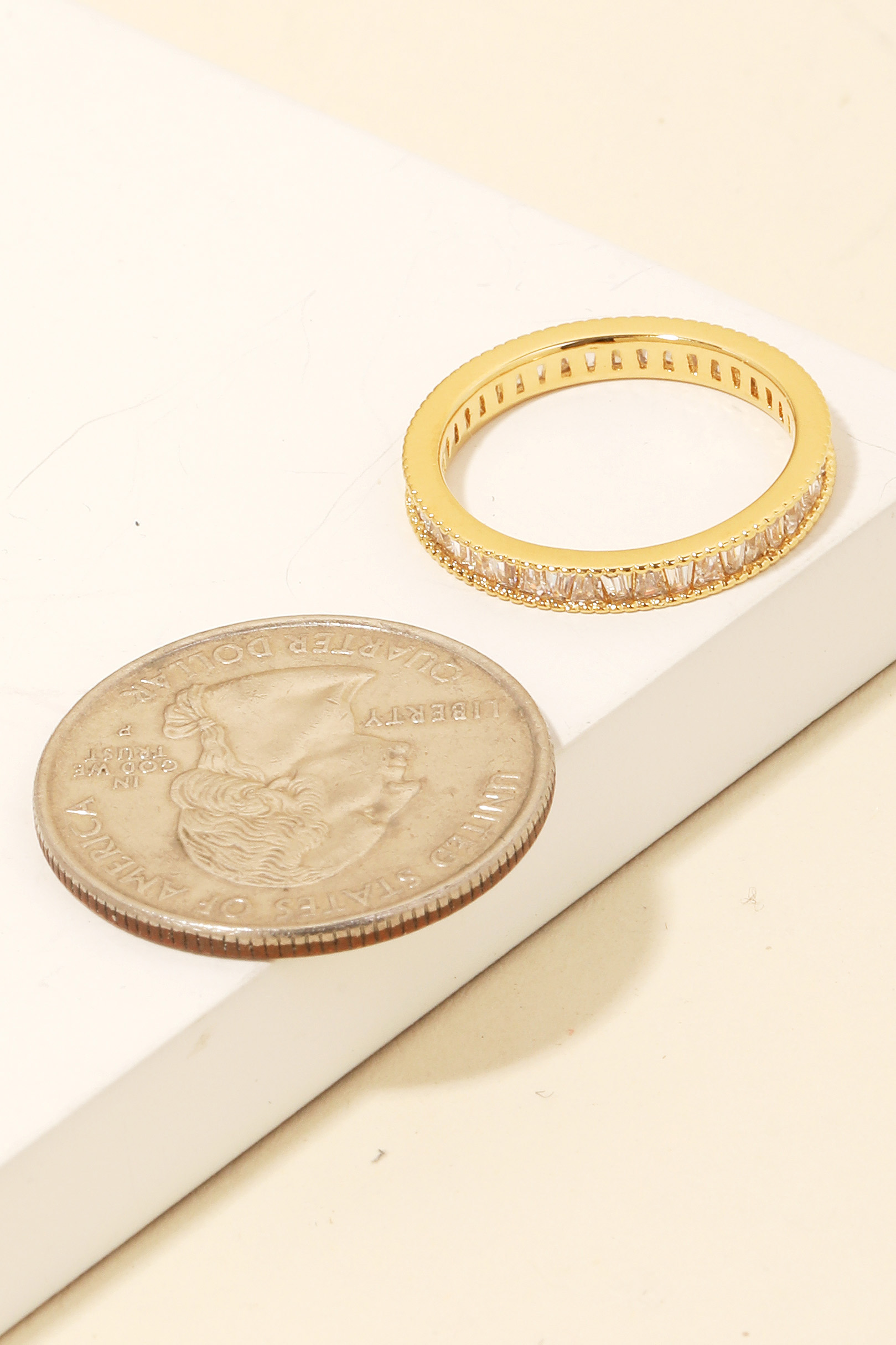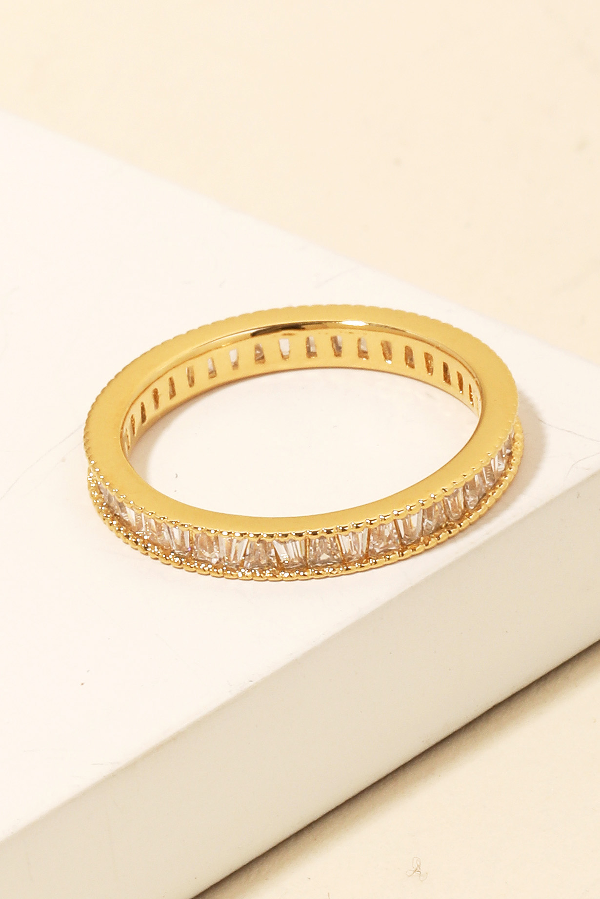 • Stay ahead of the fashion curve, this Ring comes with a special pave cubic zirconia baguettes band ring design. Elevate your personal style effortlessly with this versatile accessory, an essential component for a refined wardrobe. Available in G and S. This item is sold in packs of 1. Ring Size 6.75