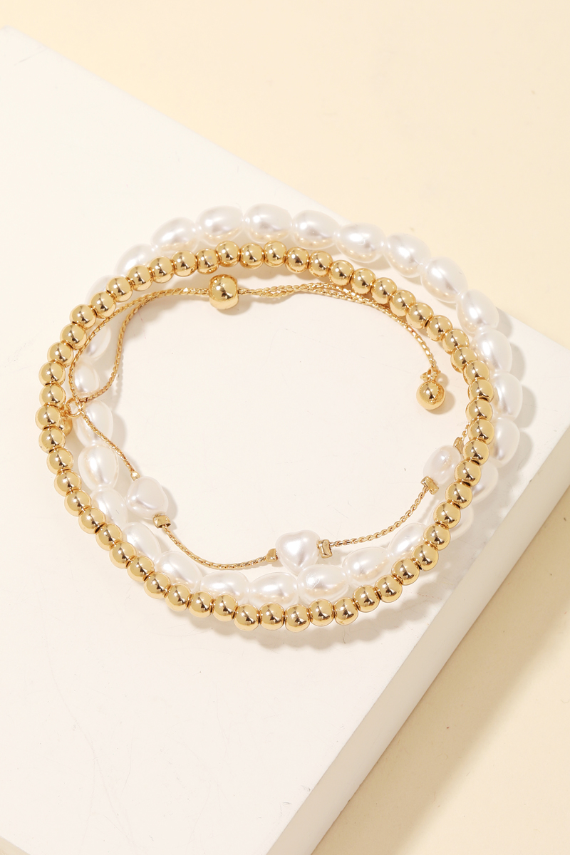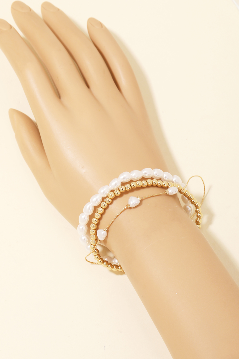 - Effortlessly stylish and always on-trend, this bracelet shows off a distinctive pearly and metallic beads set design. This item is the perfect way to add some texture and interest to any outfit. Available in GWH. This item is sold in packs of 1.