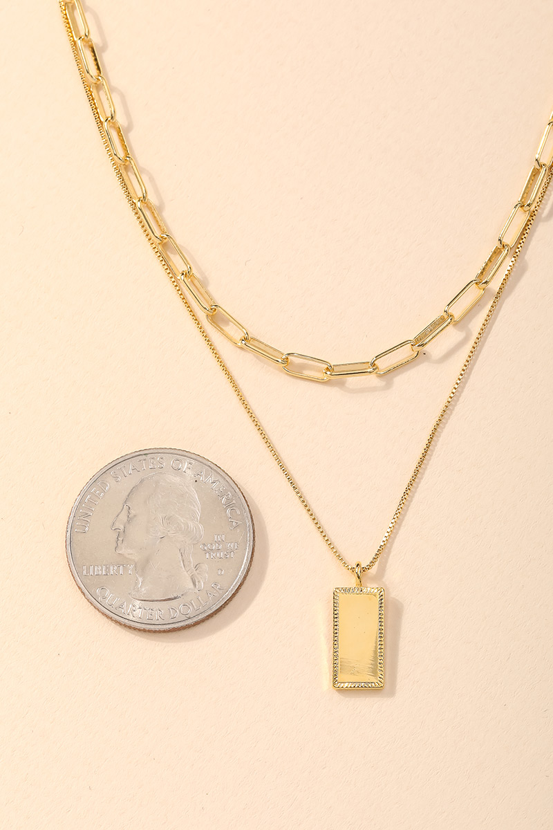 - A gorgeous unique must have trending necklace created with a rectangle pendant layered necklace design. This is great to wear during almost any occasion, and can suit casual or formal events perfectly. This is great to wear during almost any occasion, and can suit casual or formal events perfectly.