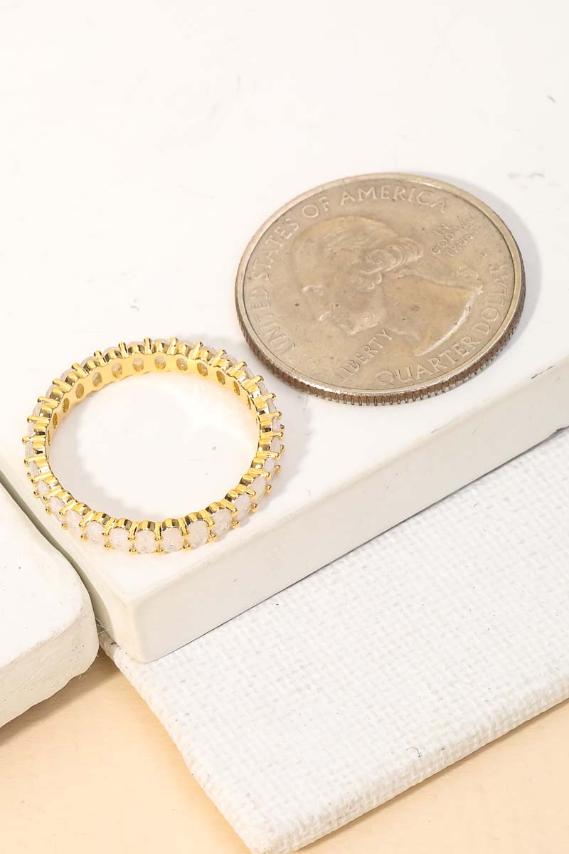 This is an absolute must have ring that has a rhinestone eternity fashion ring design. Perfect for this Spring season! Available in G. This item is sold in packs of 1.