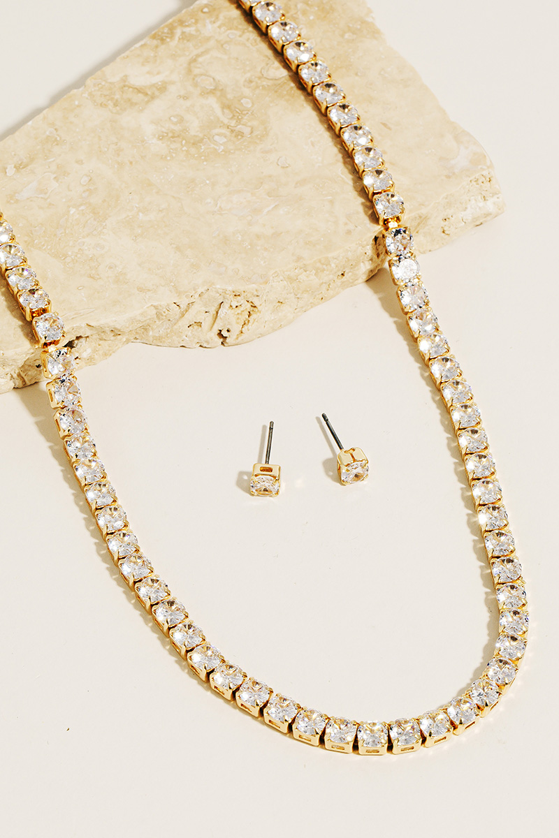 A bold and daring choice that is sure to impress, this necklace set introduces an exceptional rhinestone studded design. A versatile accessory that's perfect for any occasion, adding a touch of elegance and style to any outfit. This item is sold in packs of 1.