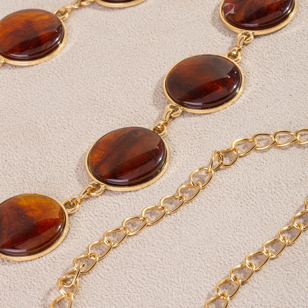 • Perfectly versatile and endlessly stylish, this chain belt radiates a sleek round stone disc design. A chic and sophisticated chain belt that's perfect for dressing up or down. This item is sold in packs of 1.