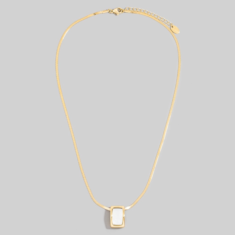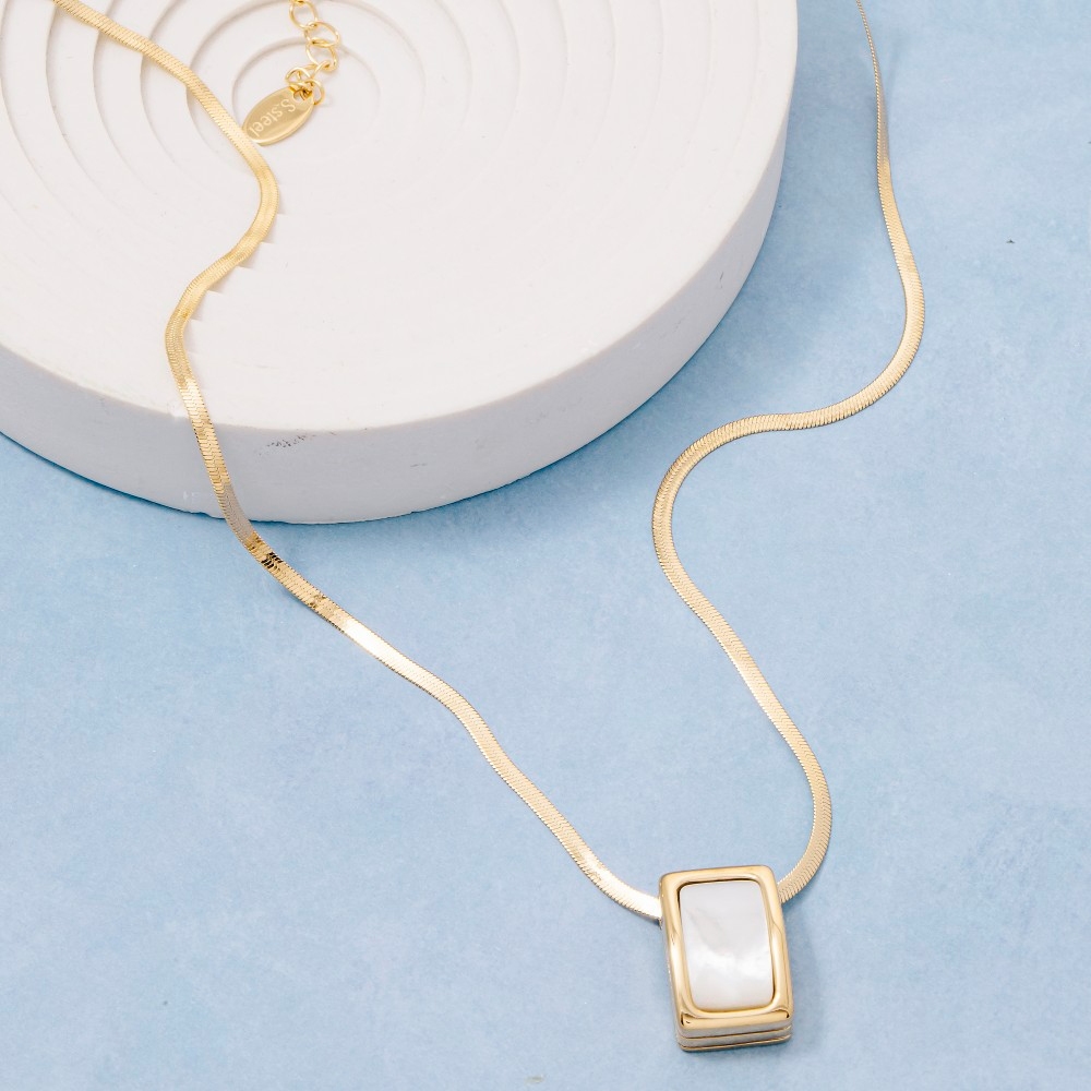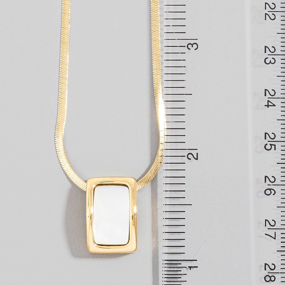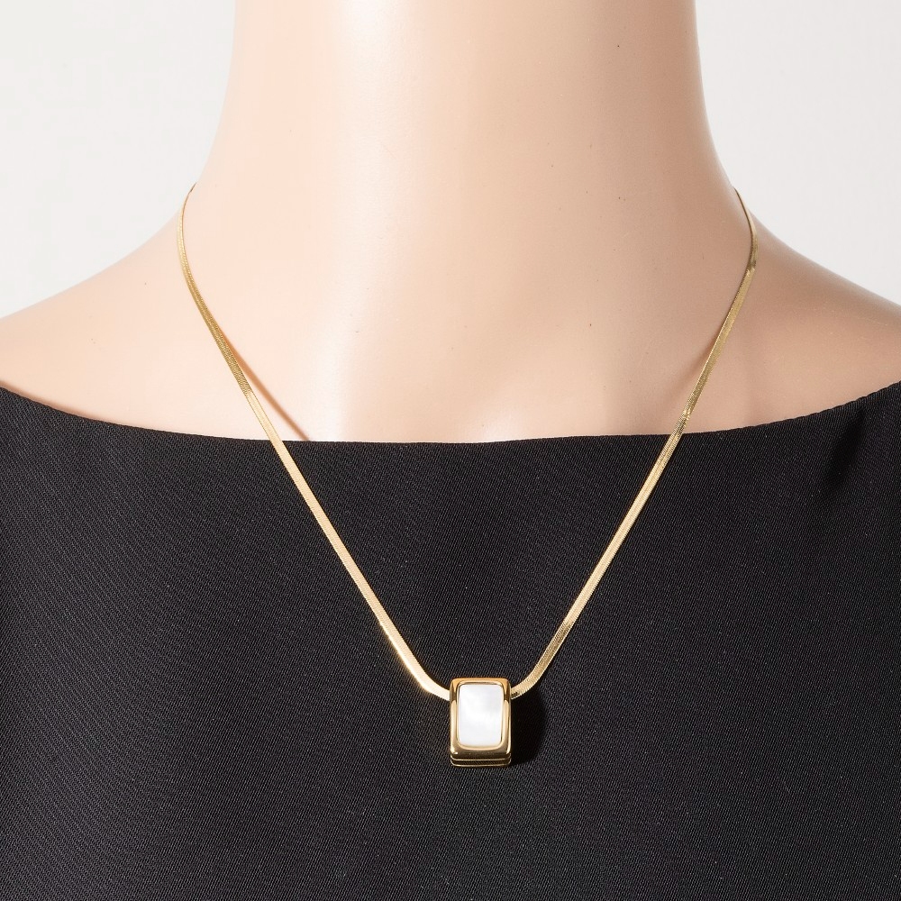 • Bold, daring, and endlessly stylish, this pendant necklace embodies a sophisticated stainless steel herringbone chain rectangle pearl design. Redefine your fashion identity with this versatile pendant necklace, a timeless piece that complements any wardrobe. Available in GD. This item is sold in packs of 1.