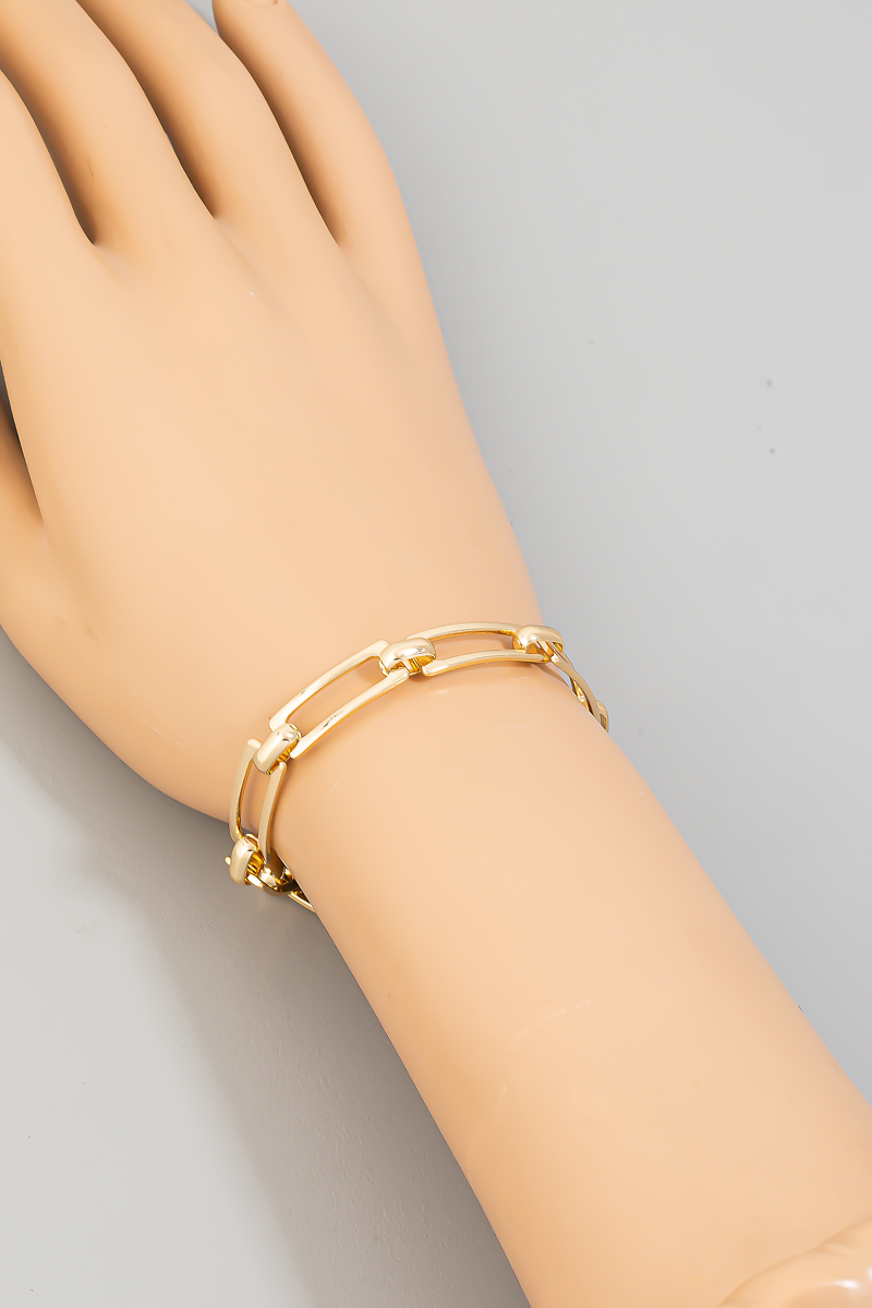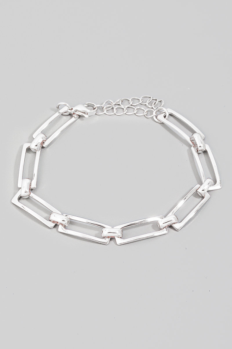 • This chain bracelet brings a unique stainless steel metallic rectangle chain link bracelet style. Experience a burst of creativity in accessorizing as this piece effortlessly sets the tone for your unique style.