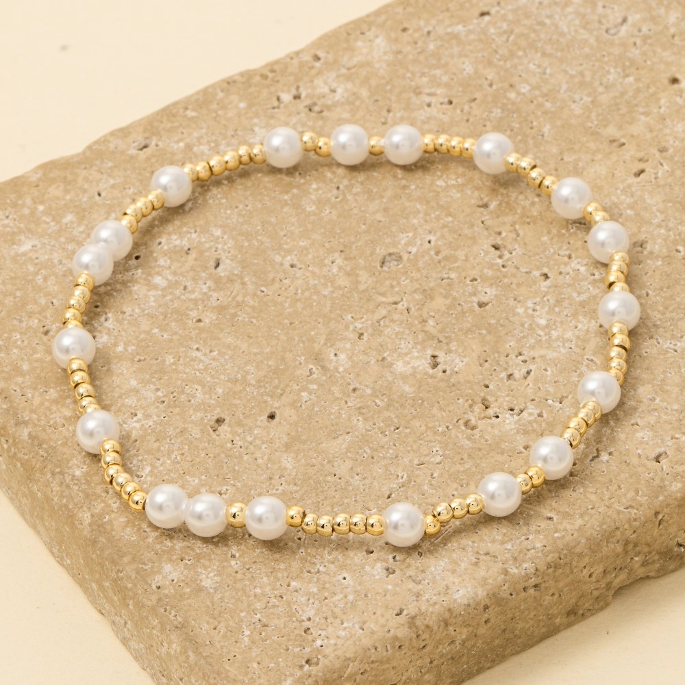Guaranteed to add a touch of glamour to any outfit, this bracelet incorporates a remarkable stainless steel round pearl beaded design. This bracelet is an effortless way to add some personality to your outfit. Available in B. This item is sold in packs of 1.