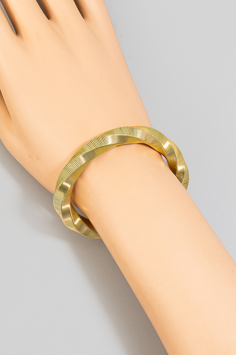- This bangle bracelet displays a vibrant stainless steel twisted geometric coiled style. Savor the craftsmanship that goes beyond the ordinary, as this bangle bracelet effortlessly captivates attention.