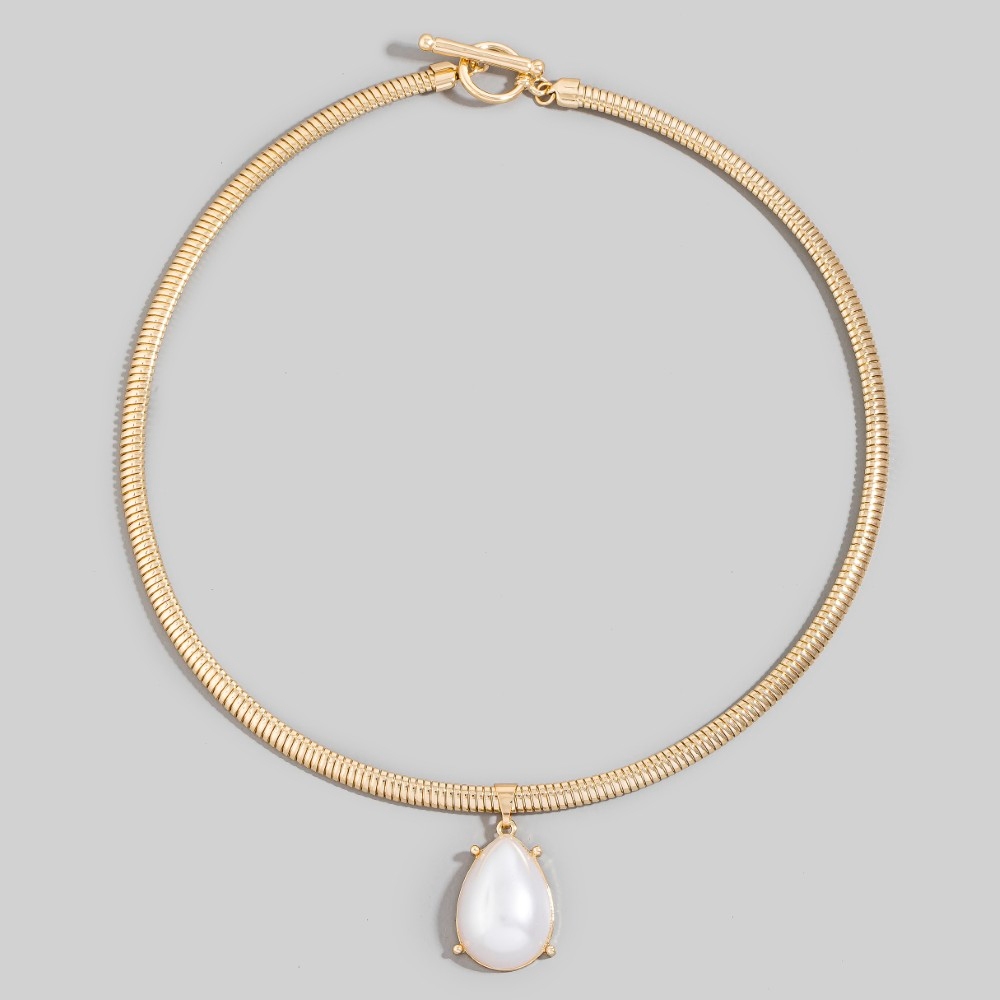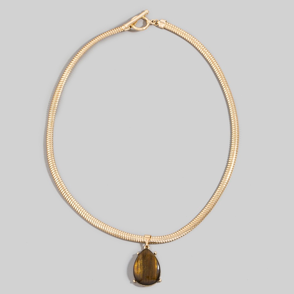 - Stay on-trend and stand out from the crowd, this chain necklace includes a stunning teardrop pendant metallic flexible snake design. This item is ideal for those who want to add some personality to their outfits without being too bold. Available in STOG, TQG, WHG. This item is sold in packs of 1.