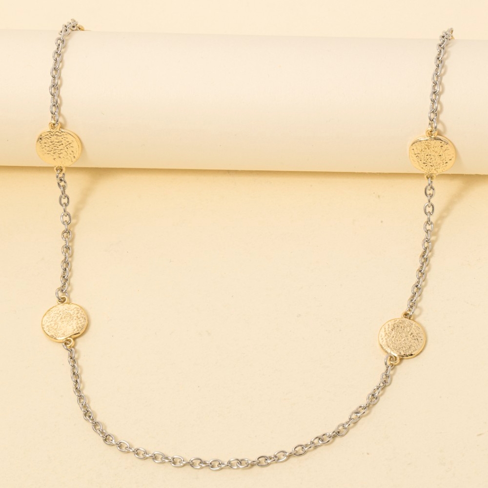 • Unleash your inner fashionista, this chain necklace features an exceptional textured station coins long design. This item adds the perfect finishing touch to any outfit, making it stand out from the crowd. Available in GD, GDRH. This item is sold in packs of 1.