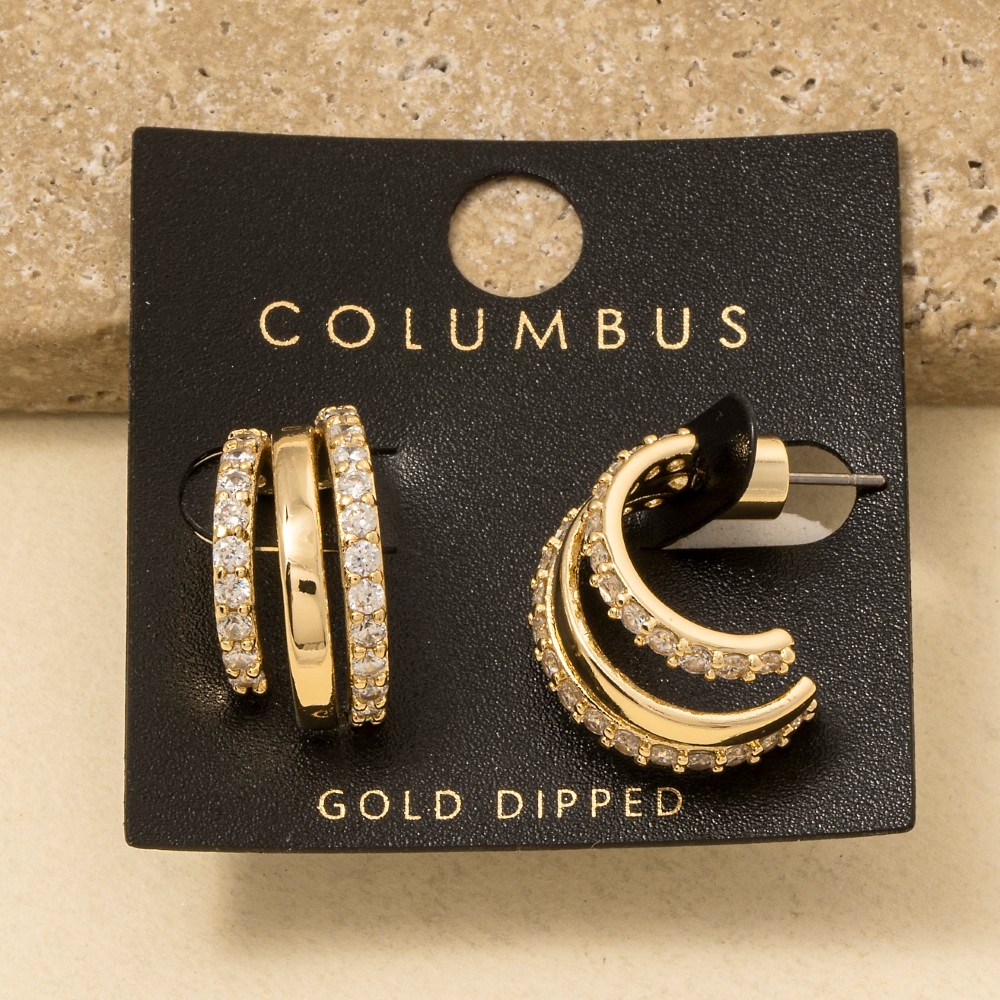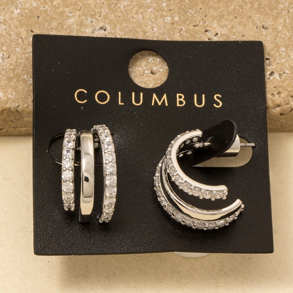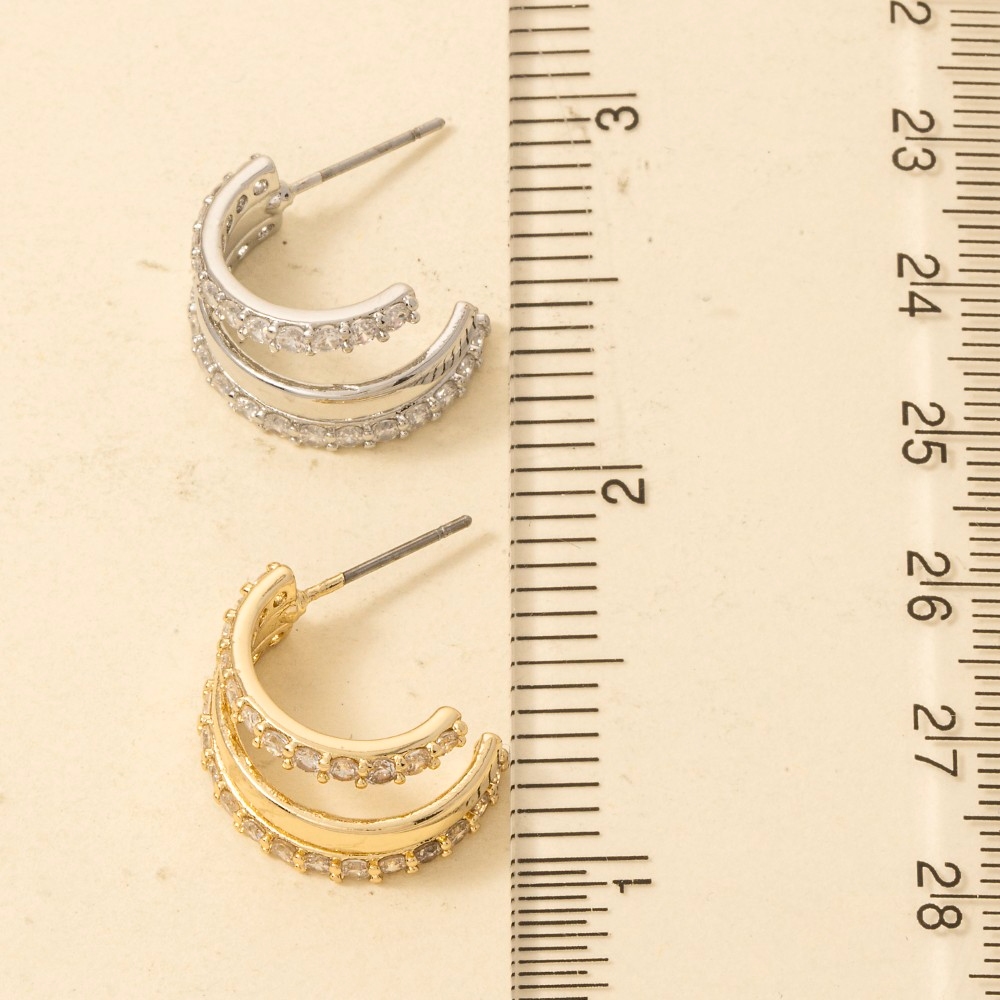• This piece is designed to make a statement, this pair of earrings features an exceptional three layer c hoop cubic zirconia design. Perfect for dressing up or down, this versatile pair of earrings adds a touch of sophistication to any look. Available in GOLD,2SILVER. This item is sold in packs of 1.
