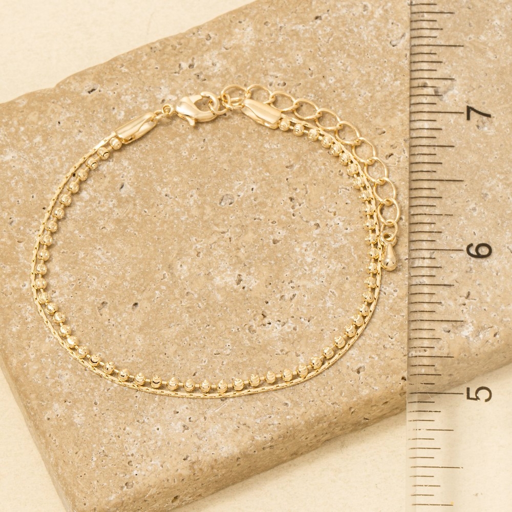• Perfect for any occasion, this bracelet encompasses a grand two row dainty metal chain bead design. A stylish bracelet that's perfect for complementing your favorite outfit. Available in G, S. This item is sold in packs of 1.