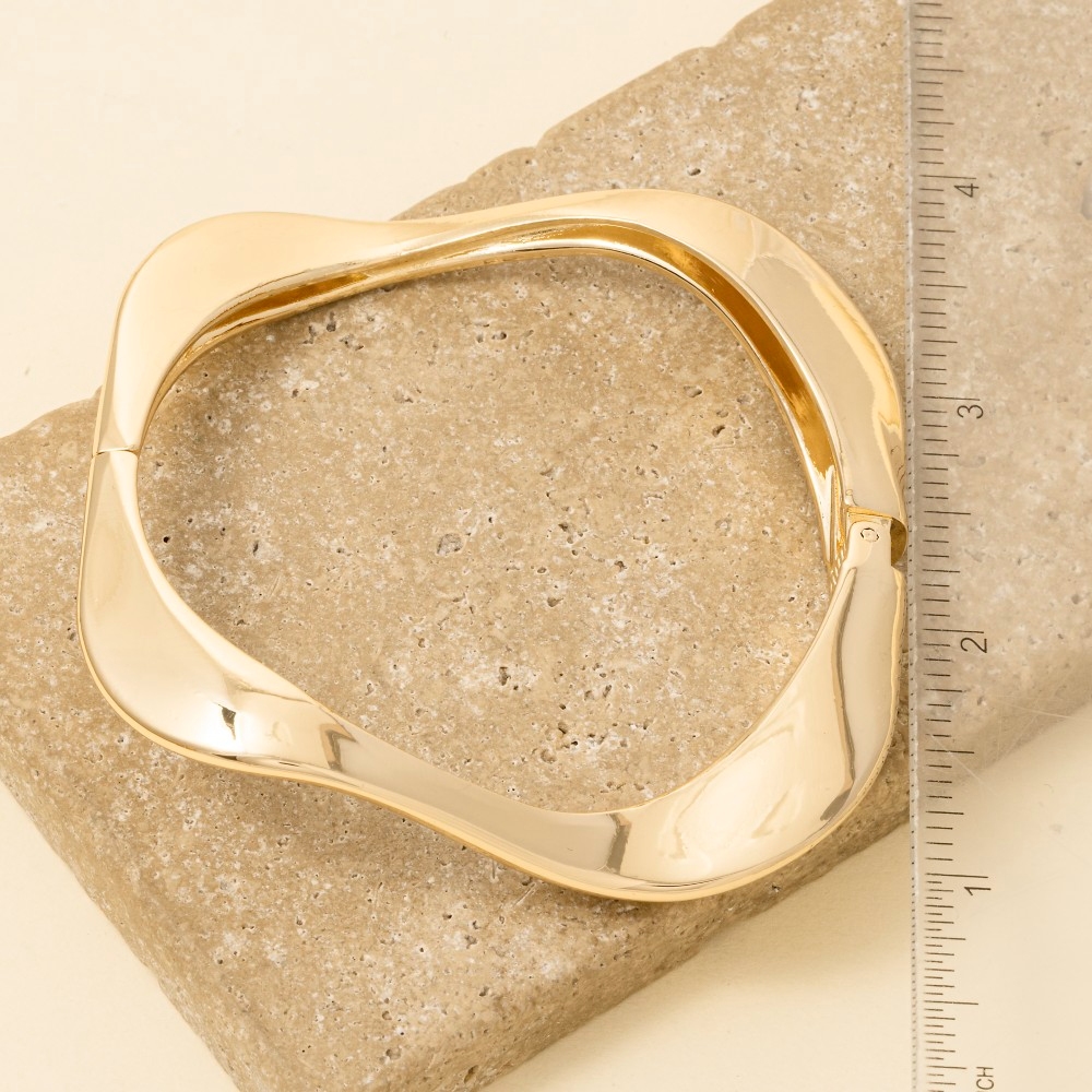 The perfect way to add some sparkle to your outfit, this bangle bracelet carries a charming wavy square hinge design. Infuse your ensemble with a touch of sophistication using this versatile bangle bracelet, a game-changer in the world of fashion. Available in G, S. This item is sold in packs of 1.