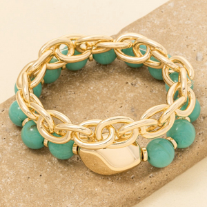 Marble Resin Beads And Chain Layered Bracelet