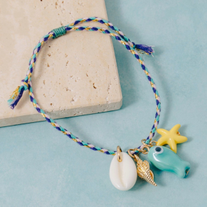 Acrylic Sea Life Charms Braided Turquoise Cord Bracelet