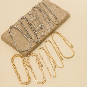 Mini Heart Charms Mixed Layered Chains Bracelet