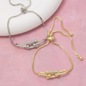 Gold Dipped Cz Pave U Link Chain Bracelet