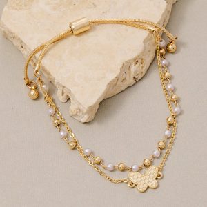 Butterfly Pendant Mixed Layered Chains Bracelet