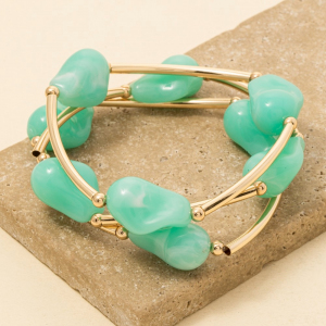 Marble Resin Irregular Beads And Metallic Tubes Bracelet Set