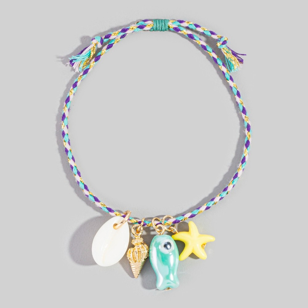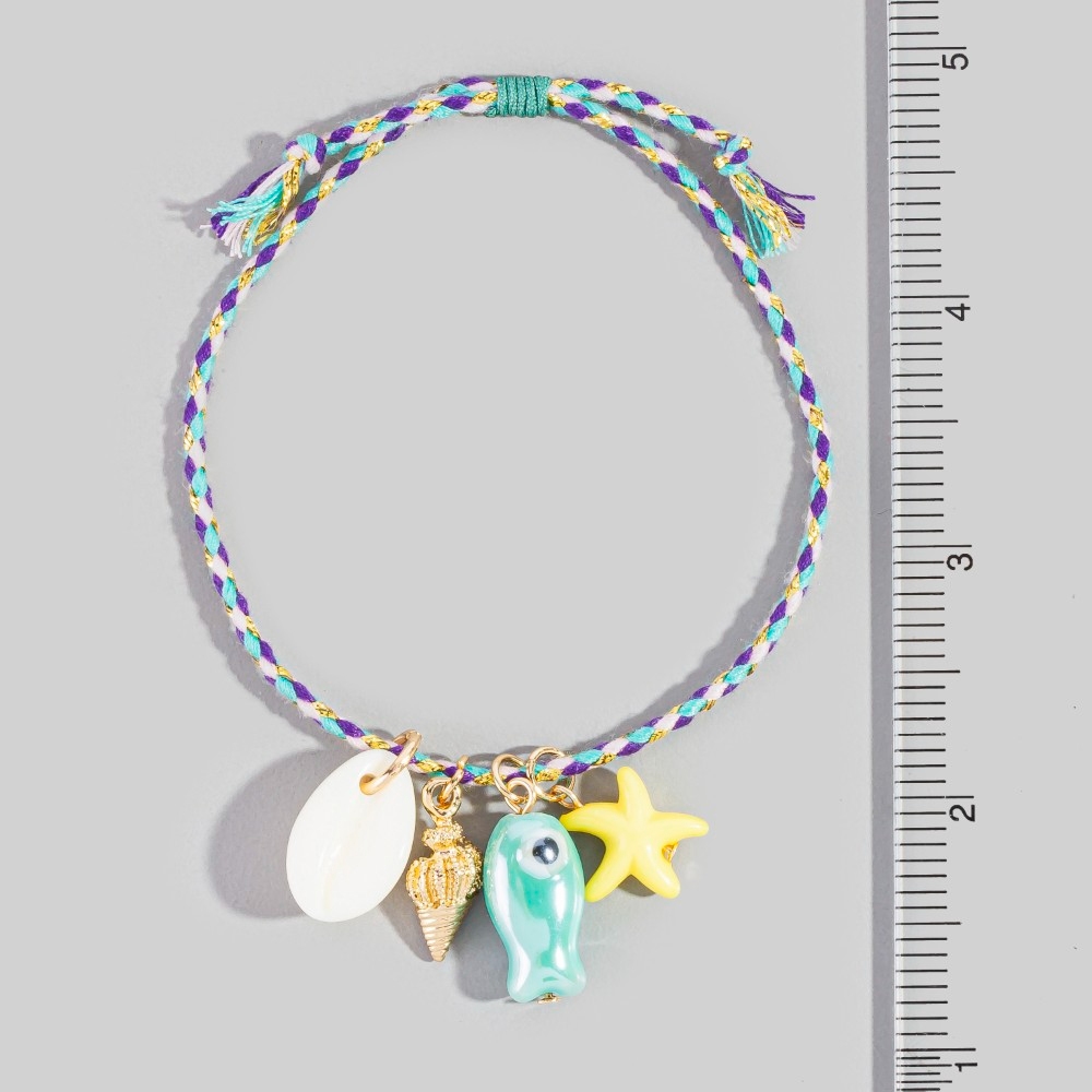 Elevate your style with something unique and daring, this bracelet features a distinct acrylic sea life charms braided turquoise cord design. Transform your outfit into a fashion masterpiece with this versatile bracelet, an essential for the style-conscious individual. Available in G. This item is sold in packs of 1.