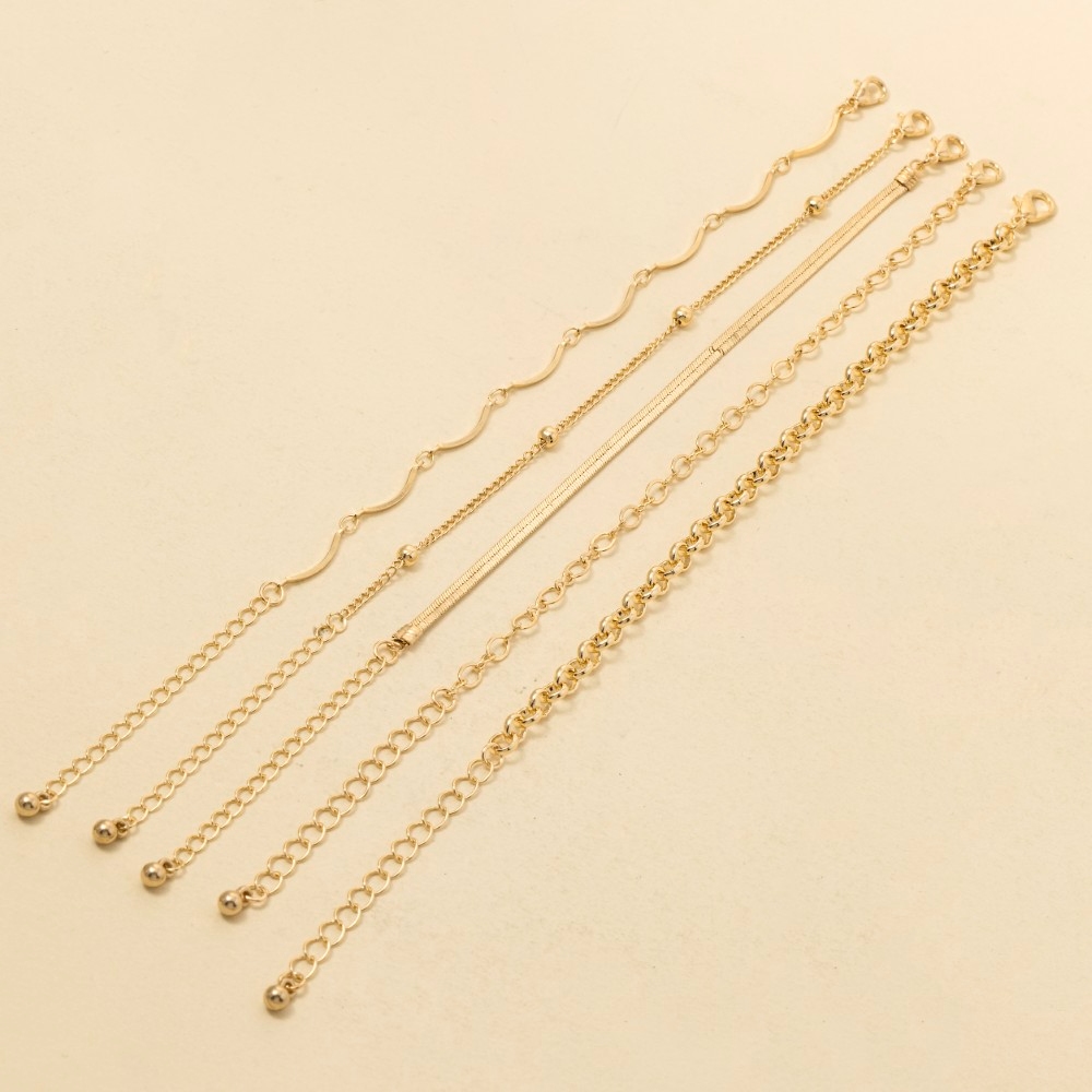 This piece is both timeless and contemporary, this bracelet shows off a distinctive assorted metallic chains set design. This item is perfect for adding some color and vibrancy to any outfit. Available in GD, RH. This item is sold in packs of 1.