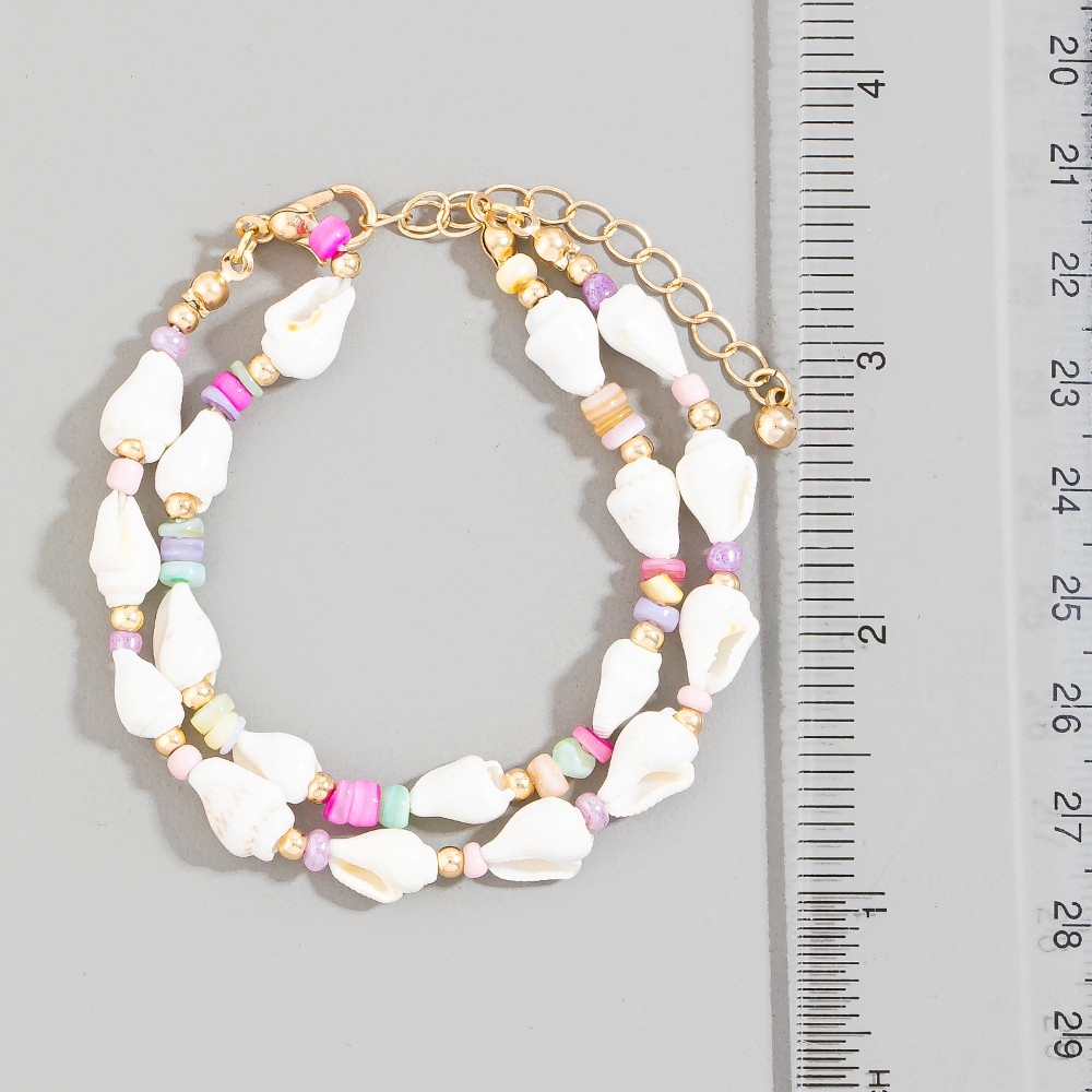 This piece is the perfect way to add some glamour to your look, this bracelet showcases a breathtaking colorful disc and sea shell beads design. A stylish bracelet that's perfect for complementing your favorite outfit. Available in GDMT. This item is sold in packs of 1.