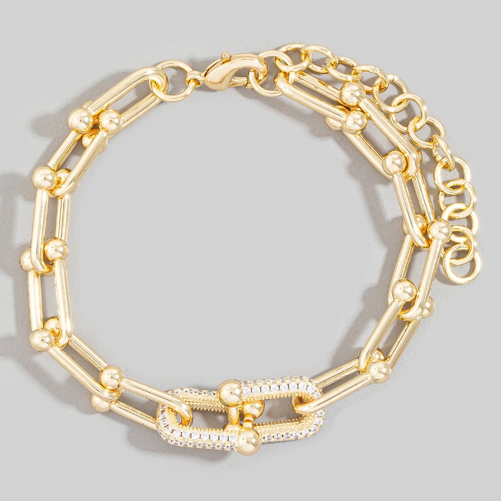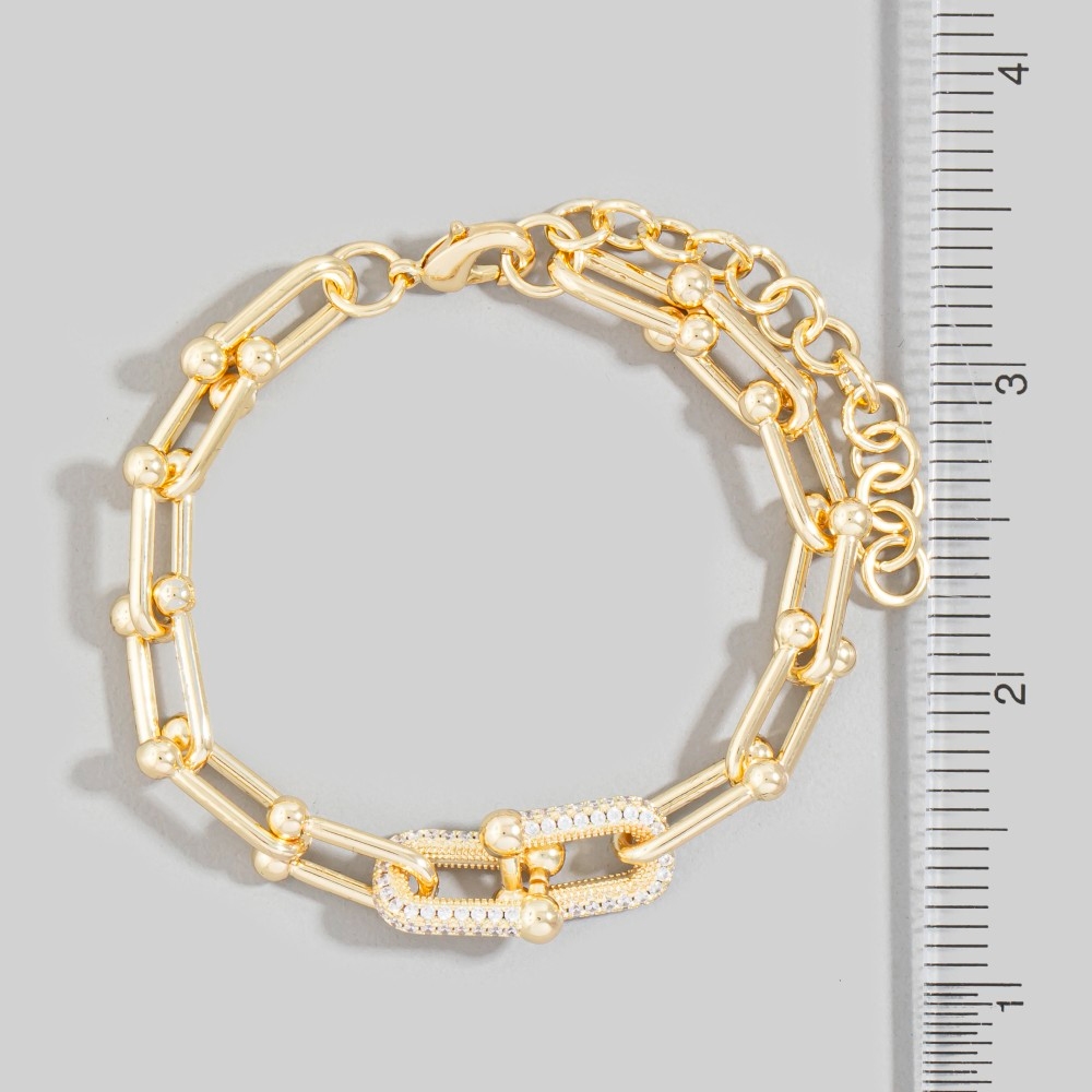 Add some edge to your wardrobe, this chain bracelet radiates a sleek gold dipped cubic zirconia pave u link design. Elevate your fashion statement with this versatile chain bracelet, adding a touch of glamour to your everyday look. Available in G. This item is sold in packs of 1.
