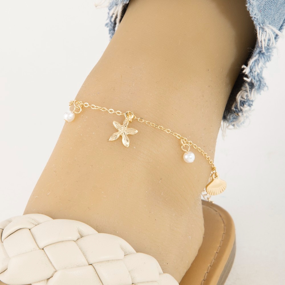 A classic design with a modern twist, this anklet adds a distinctive sea life charms chain design. This anklet is an effortless way to add some personality to your outfit. Available in GDCRM. This item is sold in packs of 1.