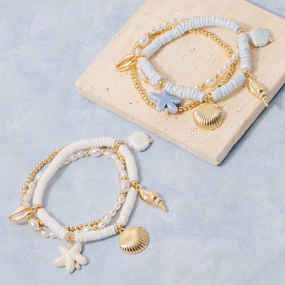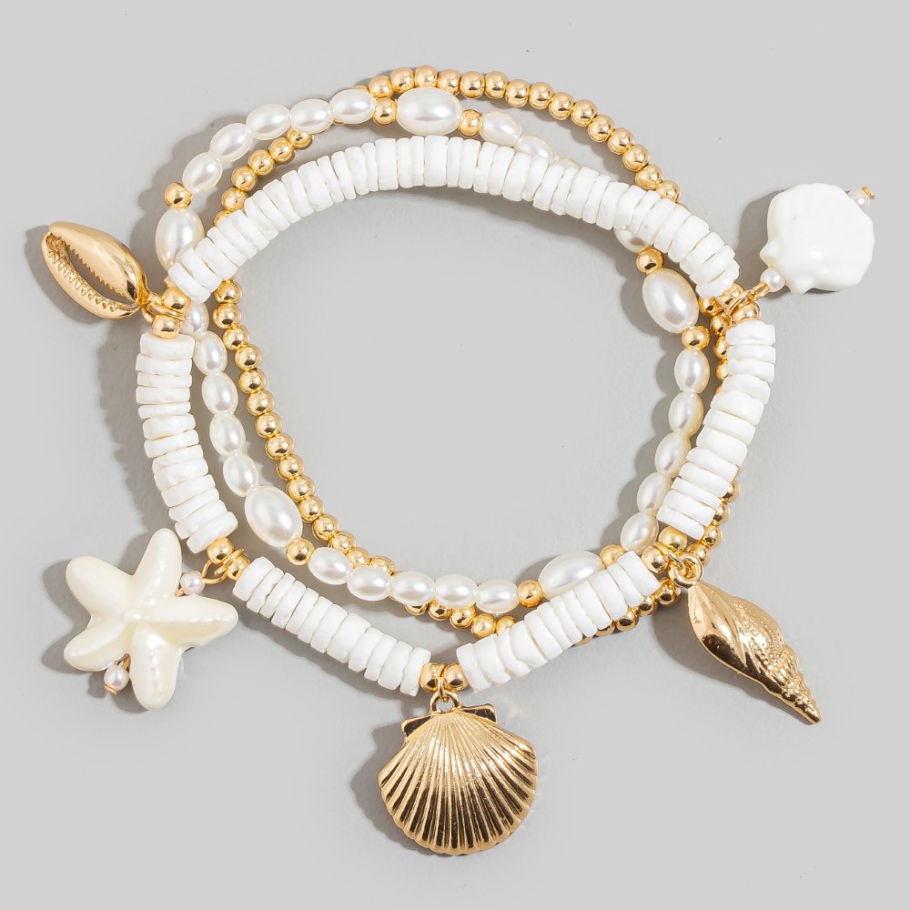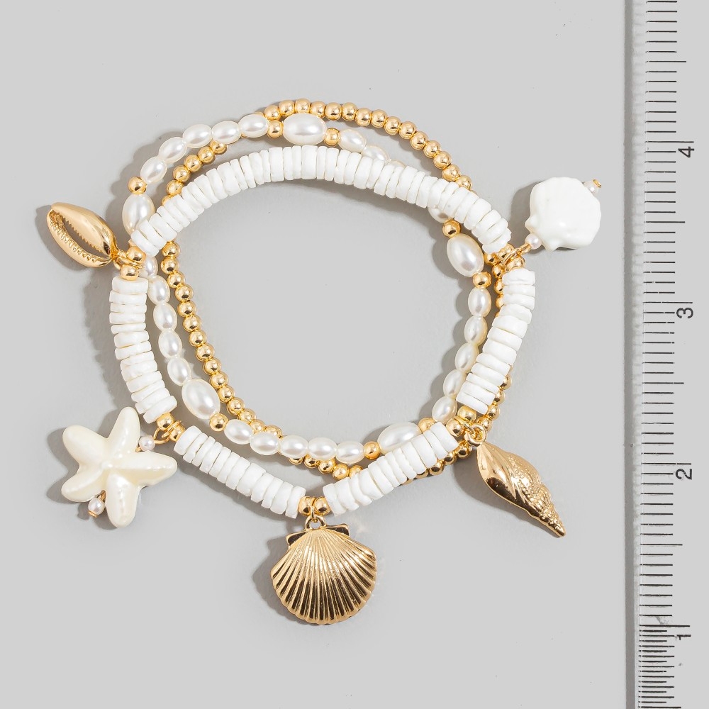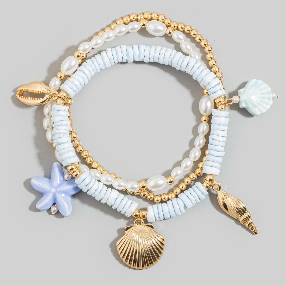 Guaranteed to add a touch of glamour to any outfit, this bracelet showcases an alluring assorted sealife charms bead set design. The perfect way to elevate any outfit, this bracelet adds a touch of elegance and style. Available in GWH and GBL. This item is sold in packs of 1.