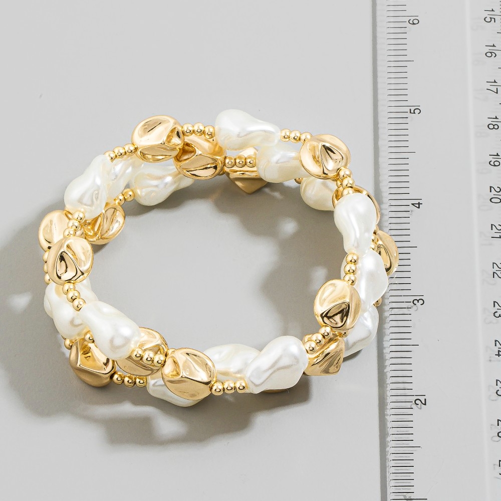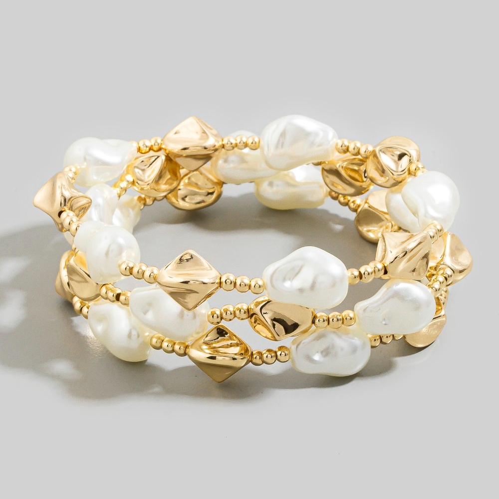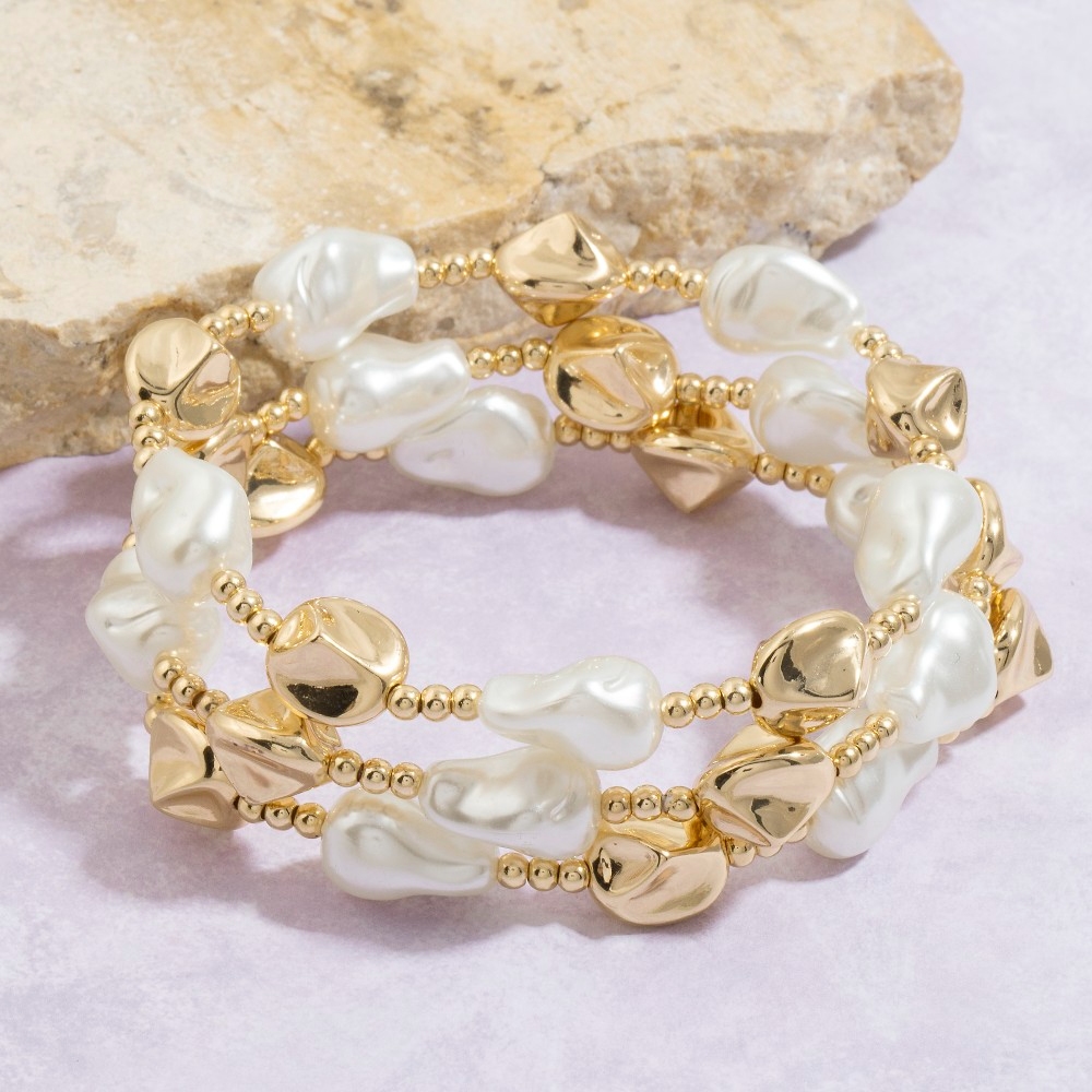 Stay ahead of the fashion curve, this bracelet possesses a fine baroque pearl and gold bead layered design. This item adds the perfect finishing touch to any outfit, making it stand out from the crowd. Available in GDCM. This item is sold in packs of 1.