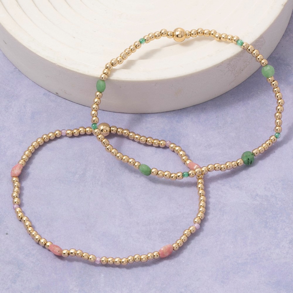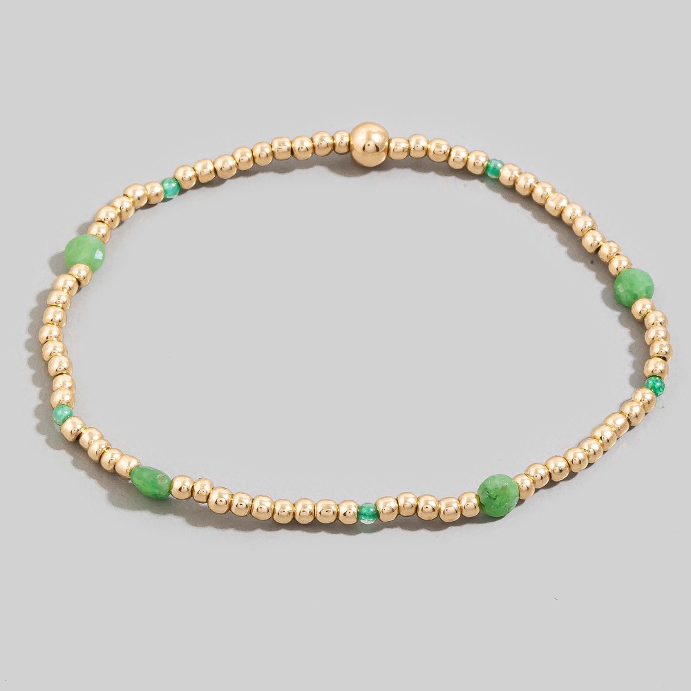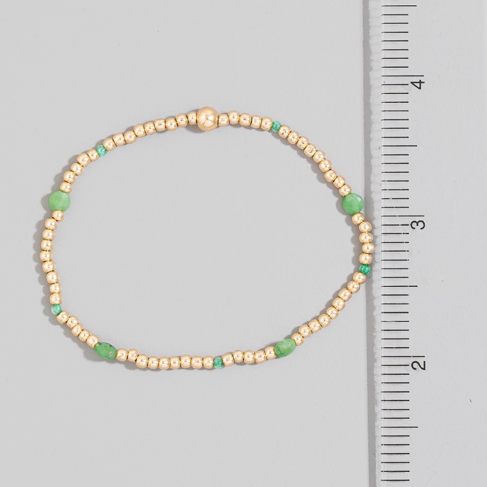 Uniquely designed and endlessly stylish, this stretch bracelet offers a remarkable bead green stone accent design. Perfect for adding some personality and flair to your wardrobe, this stretch bracelet is a must-have. Available in MI, PK. This item is sold in packs of 1.
