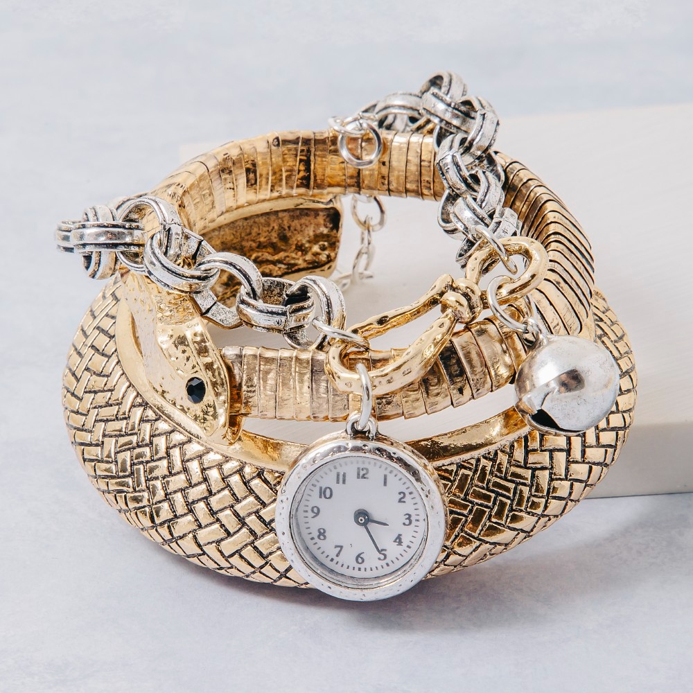 • Bold and daring, this bangle bracelet offers a remarkable chain link watch set design. Elevate your outfit with this stylish bangle bracelet that's perfect for any occasion. Available in MULTI. This item is sold in packs of 1.