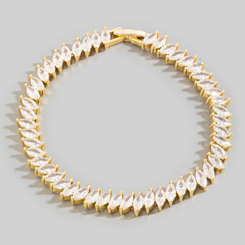 • This piece is the perfect way to add some glamour to your look, this bracelet emanates an elegant cz marquise chain link design. This bracelet is an effortless way to add some personality to your outfit. Available in G, S. This item is sold in packs of 12.
