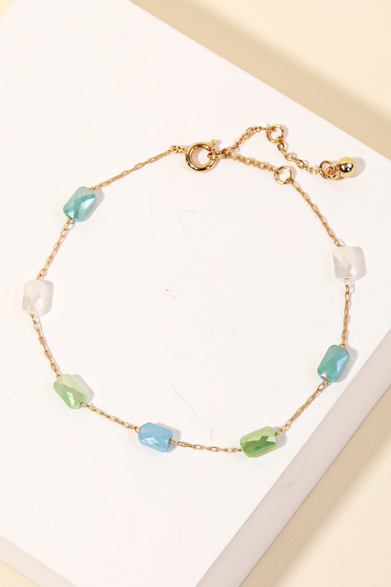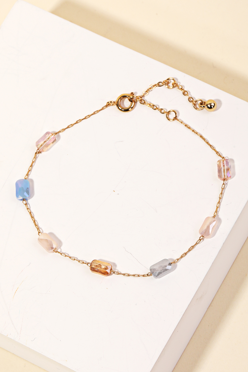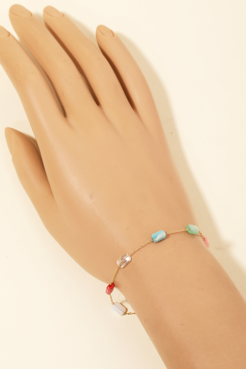 - Make a bold statement with this chain bracelet features a distinct dainty rectangle bead chain bracelet design. The perfect way to complete any outfit, whether you're dressing up or keeping it casual. Available in GDIVY, GDMCR, GDMMLT, GDMPK, GDNMLT4, GDSKY and GDWMLT1. This item is sold in packs of 1.