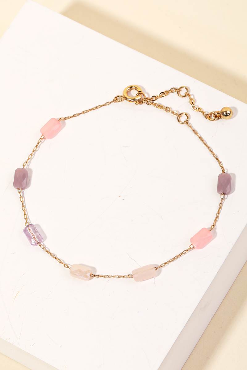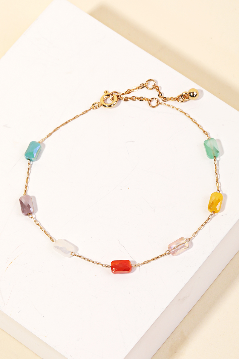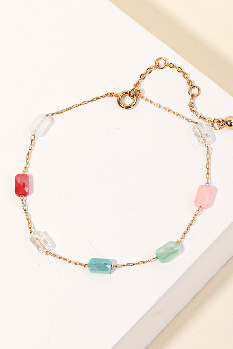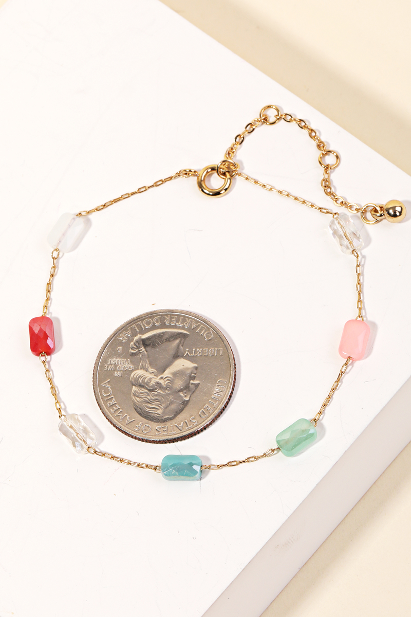 - Make a bold statement with this chain bracelet features a distinct dainty rectangle bead chain bracelet design. The perfect way to complete any outfit, whether you're dressing up or keeping it casual. Available in GDIVY, GDMCR, GDMMLT, GDMPK, GDNMLT4, GDSKY and GDWMLT1. This item is sold in packs of 1.