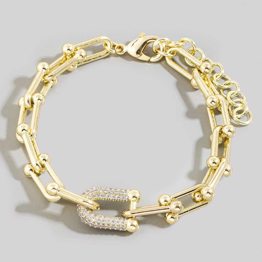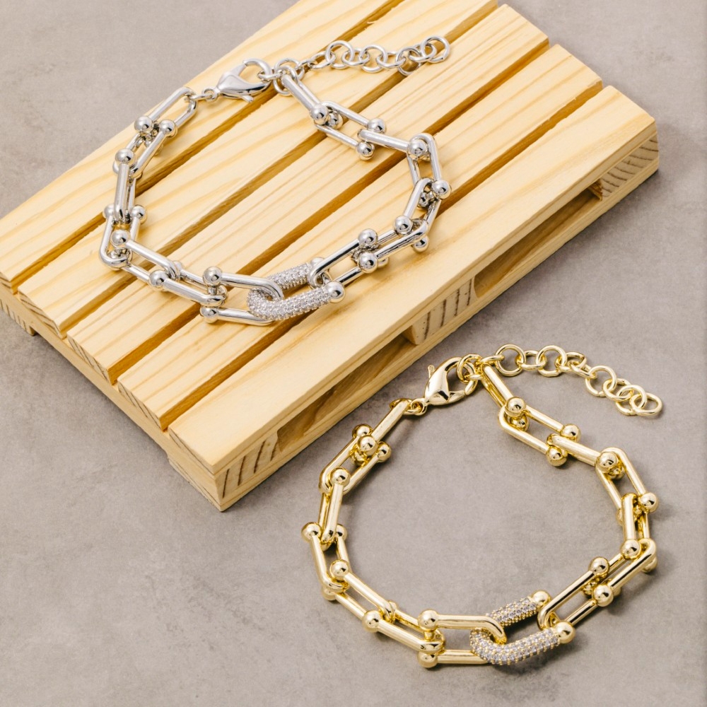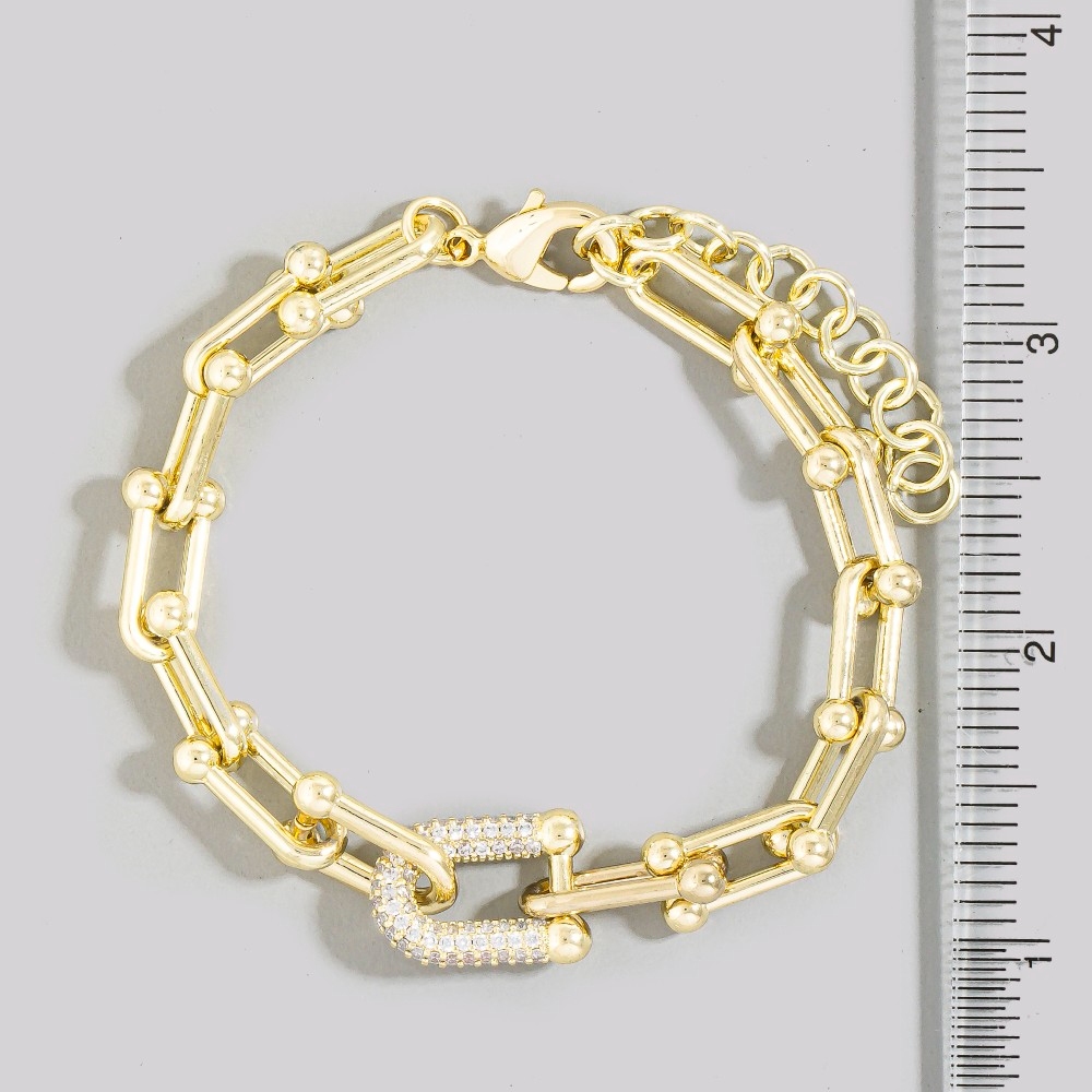 • A stunning piece that is sure to turn heads, this chain bracelet highlights a special gold dipped cubic zirconia chunky design. Infuse a hint of luxury into your daily attire with this versatile chain bracelet, a must-have for those who appreciate timeless elegance. Available in GD, SV. This item is sold in packs of 1.
