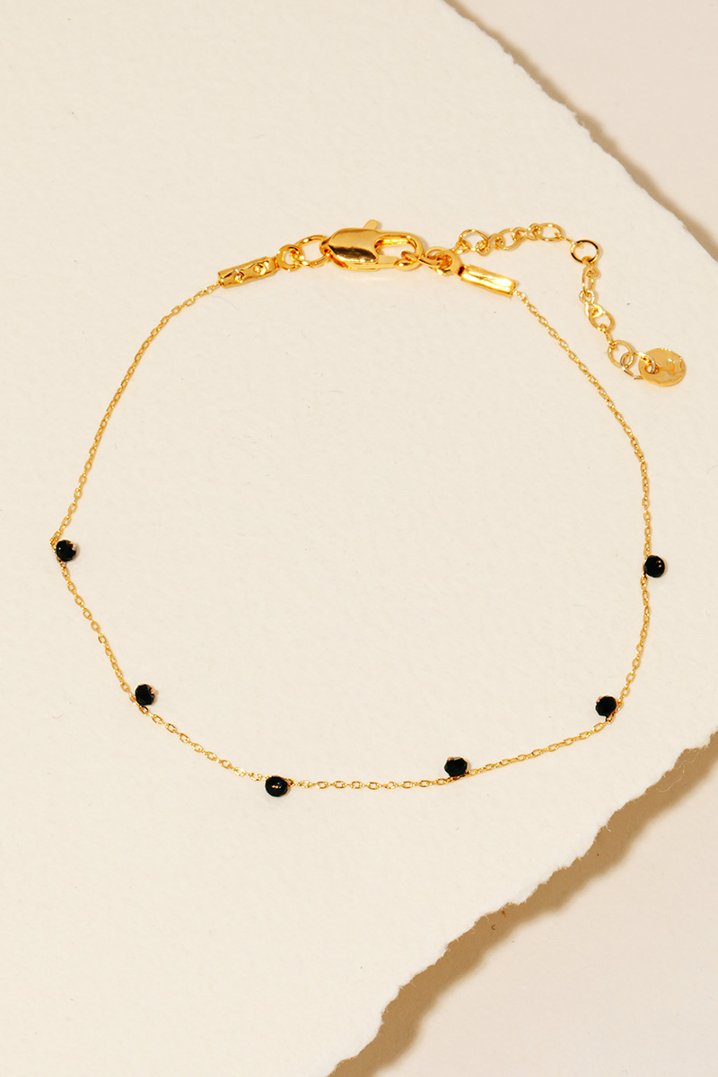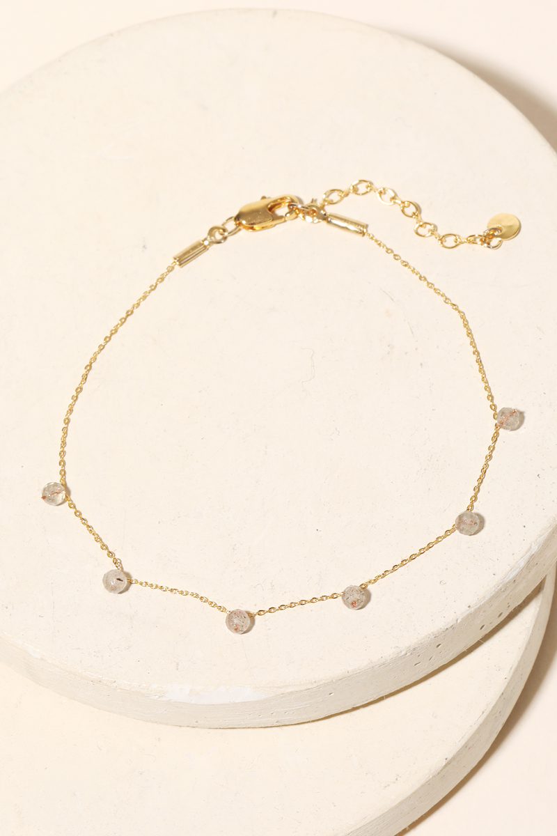 This chain bracelet is made with 60% Brass and 40% Gemstone.