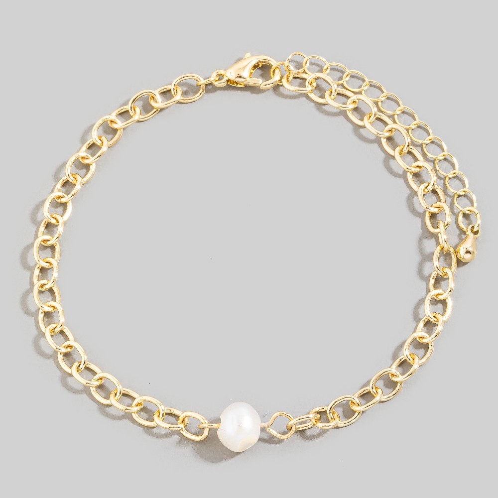 • A classic design with a modern twist, this chain bracelet comes with a special pearl bead charm dainty design. A chic and sophisticated chain bracelet that's perfect for dressing up or down. Available in GD, RH. This item is sold in packs of 1.