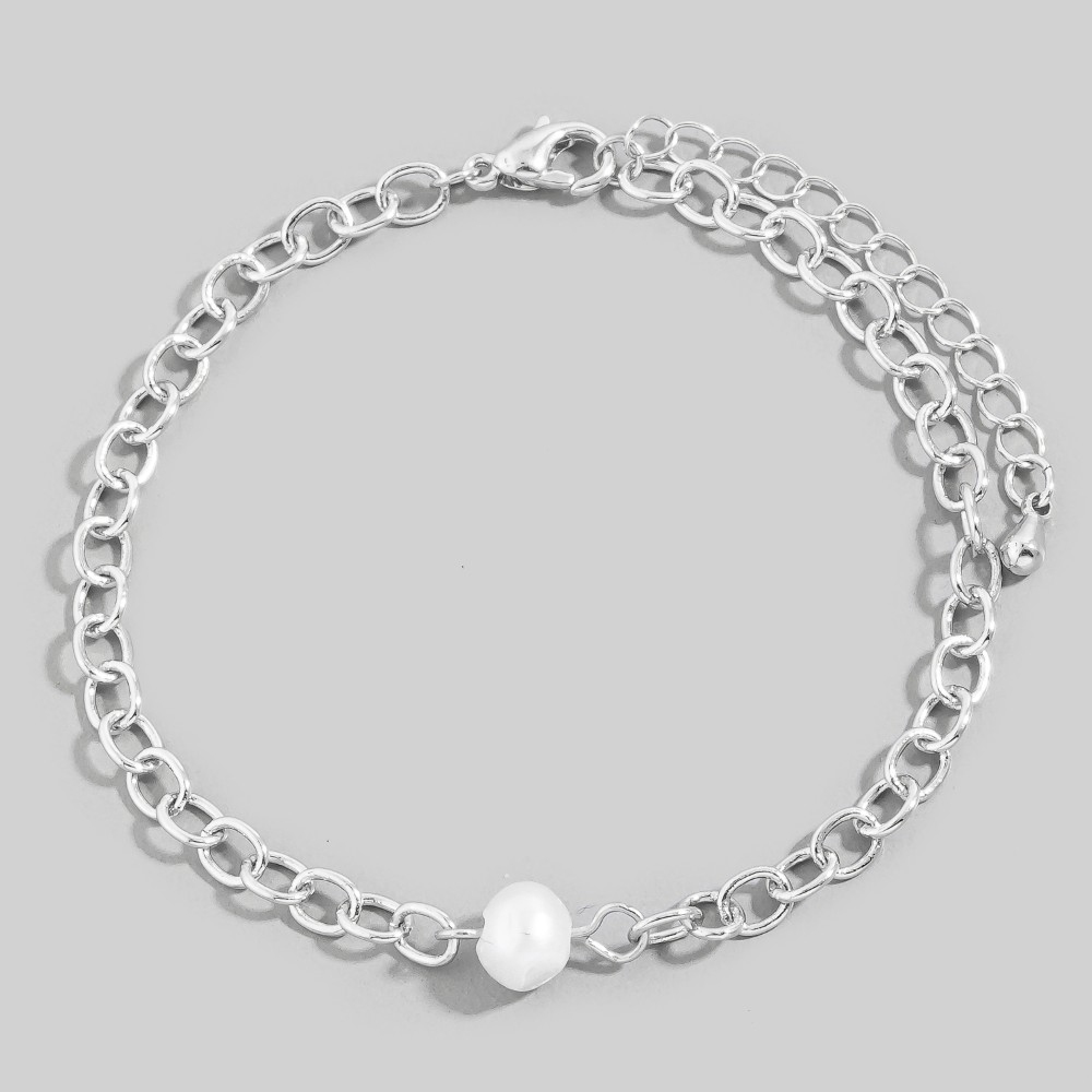 Two Tone Pearl And Oval Chain Bracelet