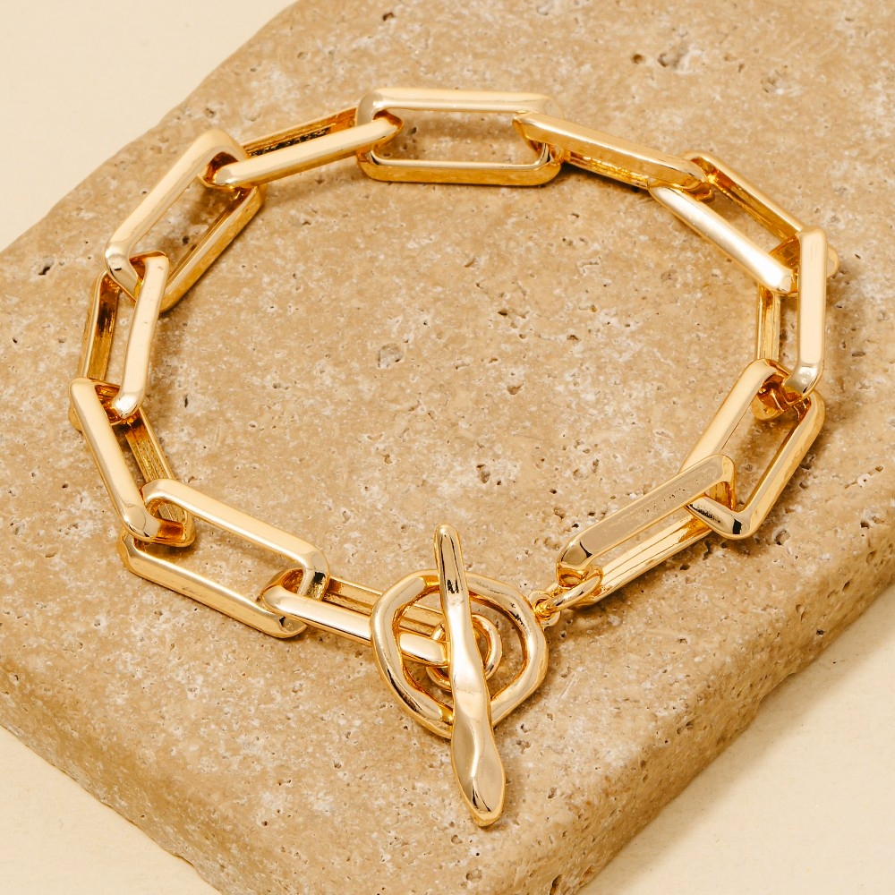 The perfect way to complete any outfit, this chain bracelet offers a remarkable rectangle toggle design. Unlock endless styling possibilities with this versatile chain bracelet, creating a signature look that speaks volumes. Available in G, S. This item is sold in packs of 1.